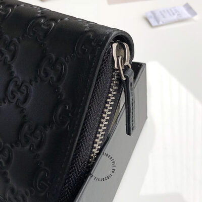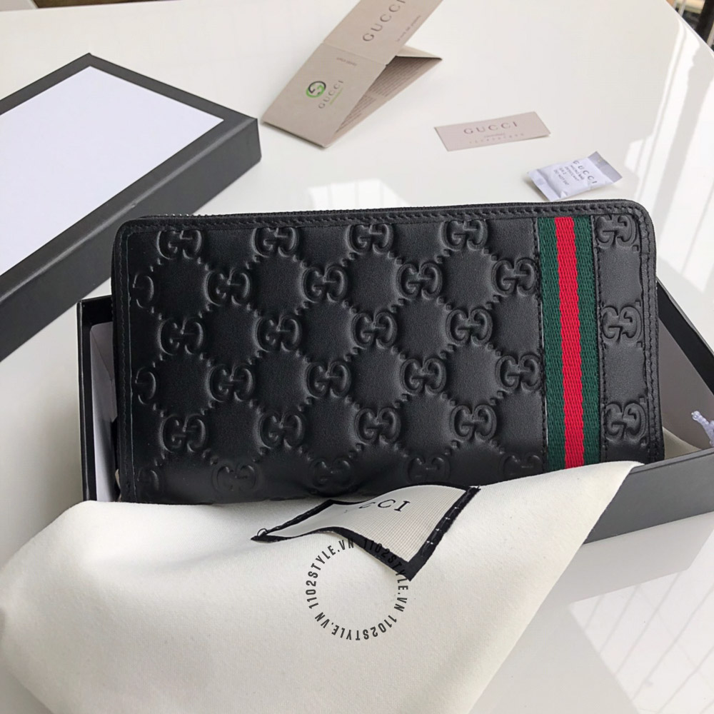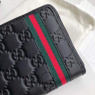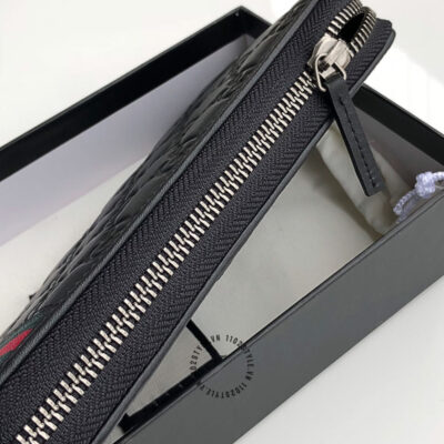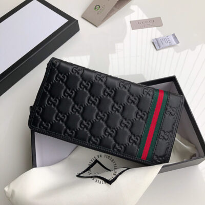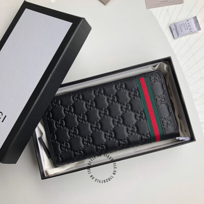 Hình ảnh chi tiết bóp nam Gucci màu đen Fake 1:1 họa tiết sọc cao cấp: