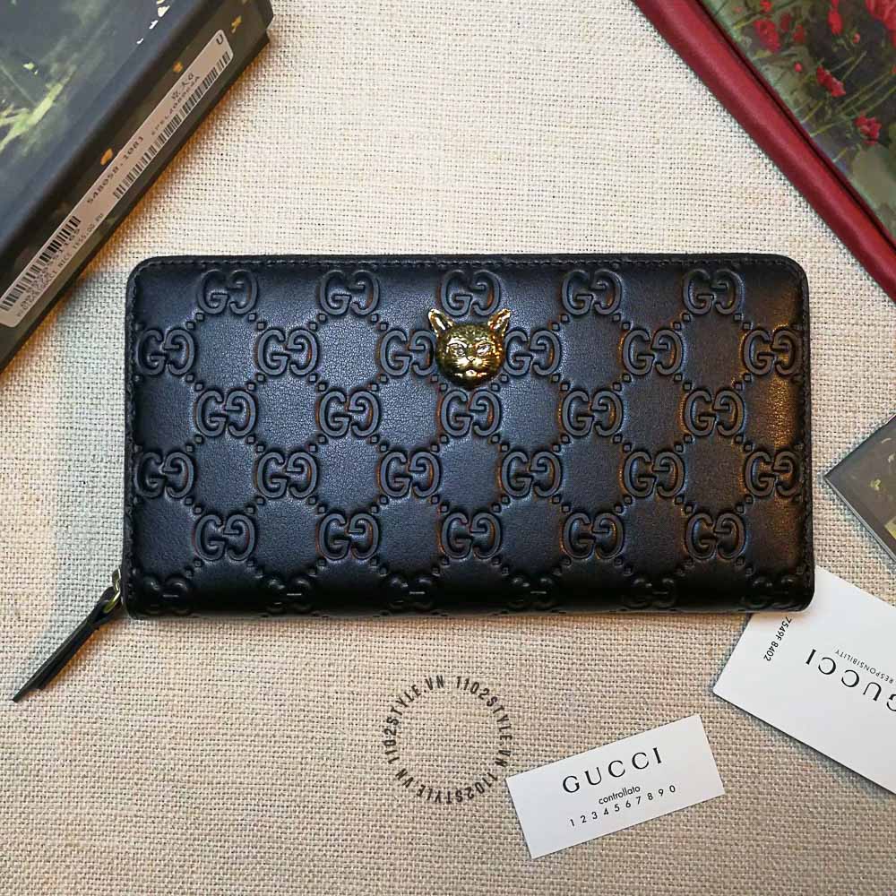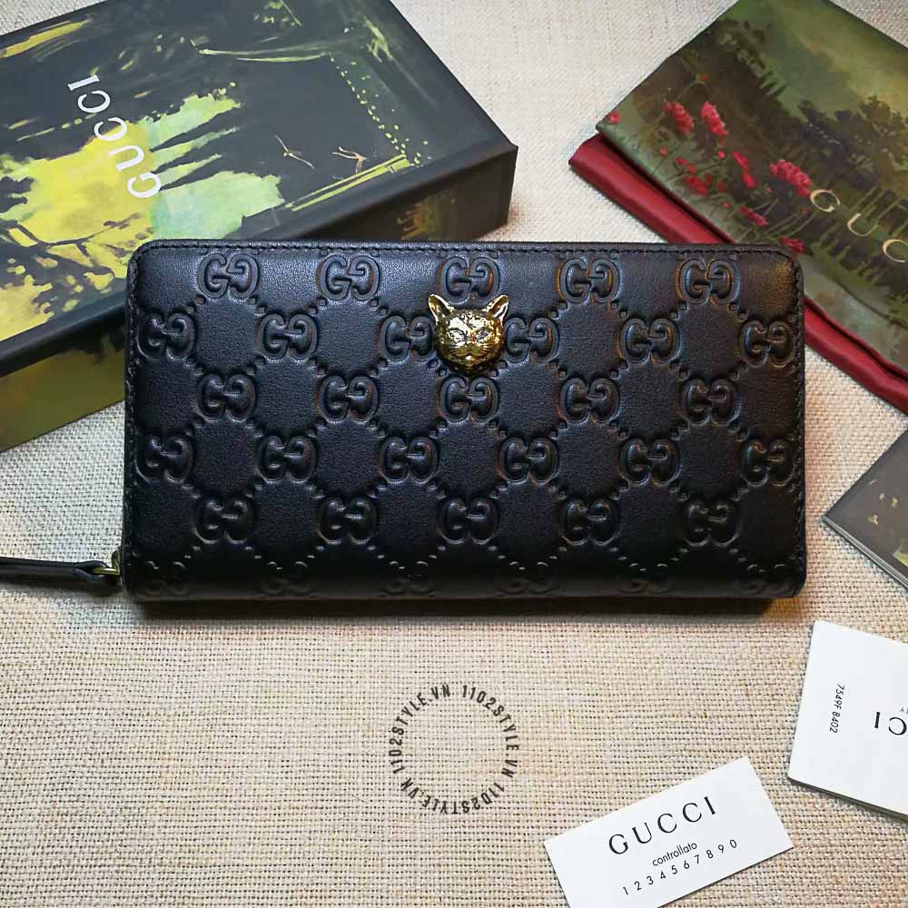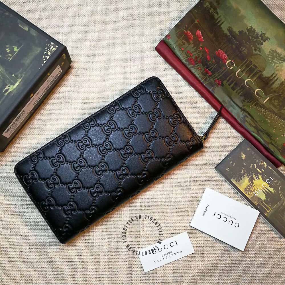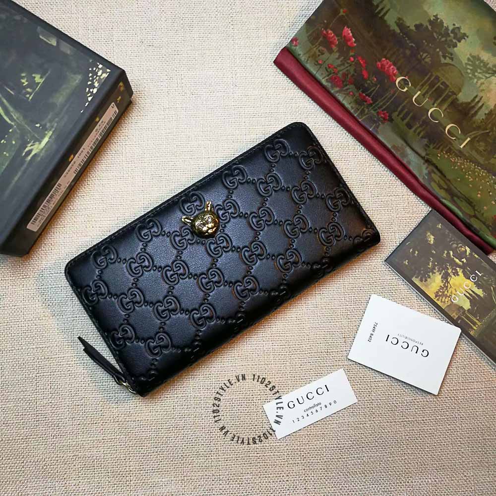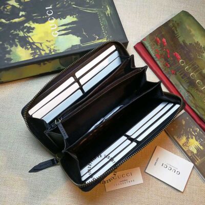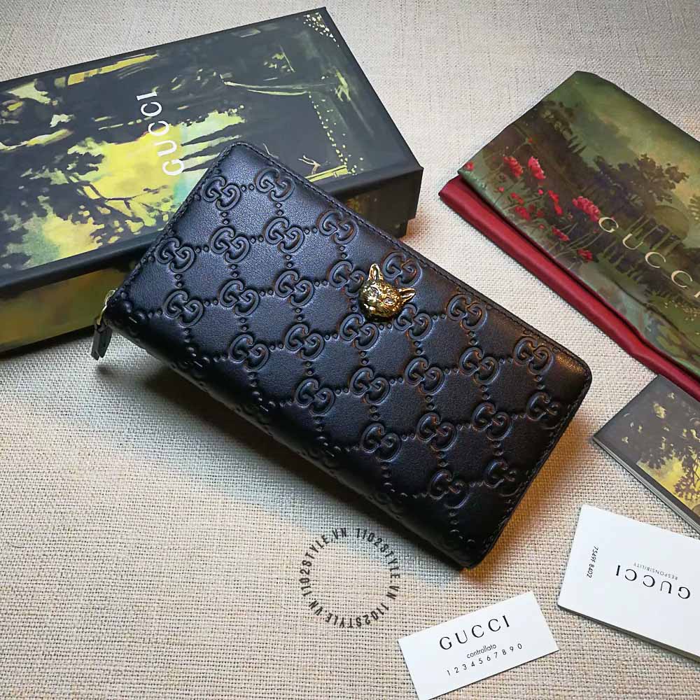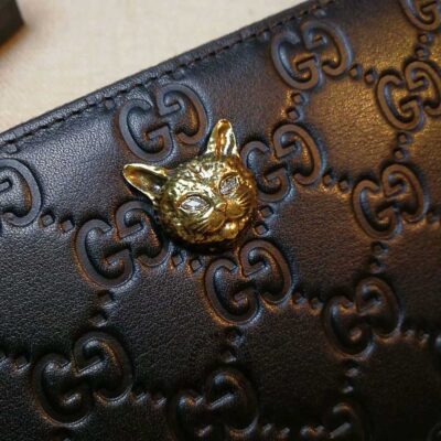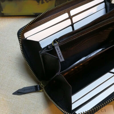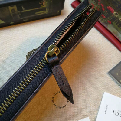 Hình ảnh chi tiết bóp nam Gucci màu đen replica 1:1 logo kim loại cao cấp:
