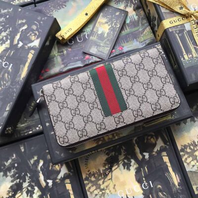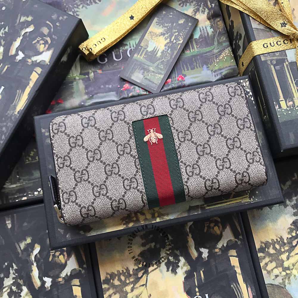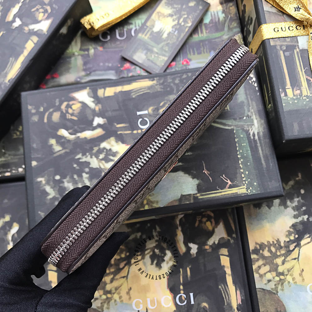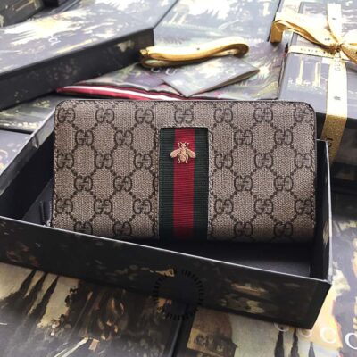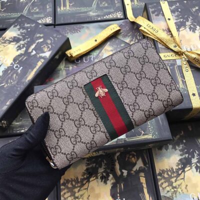 Hình ảnh chi tiết bóp nam Gucci màu ghi replica 1:1 logo con ong cao cấp: