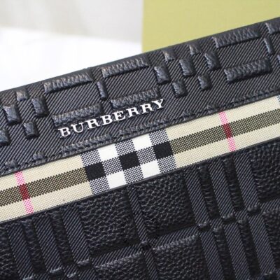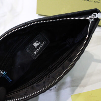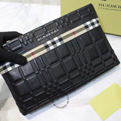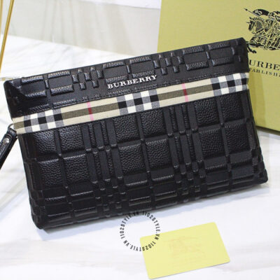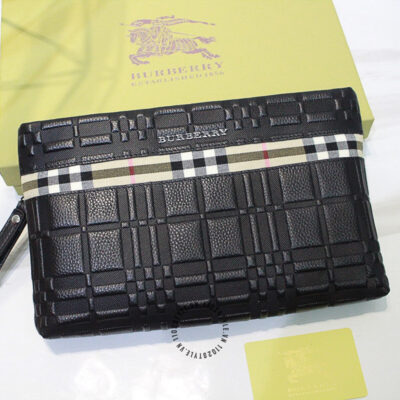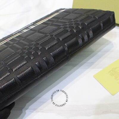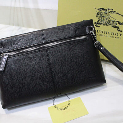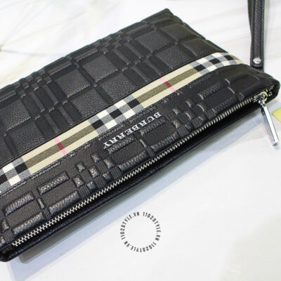 Ảnh chi tiết clutch Burberry nam da xịn màu đen logo chữ kim loại rep 1:1: