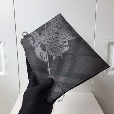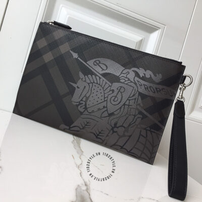 Hình ảnh mô tả clutch Burberry nam phối màu họa tiết kỵ sĩ cưỡi ngựa cao cấp: