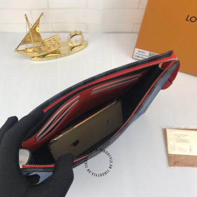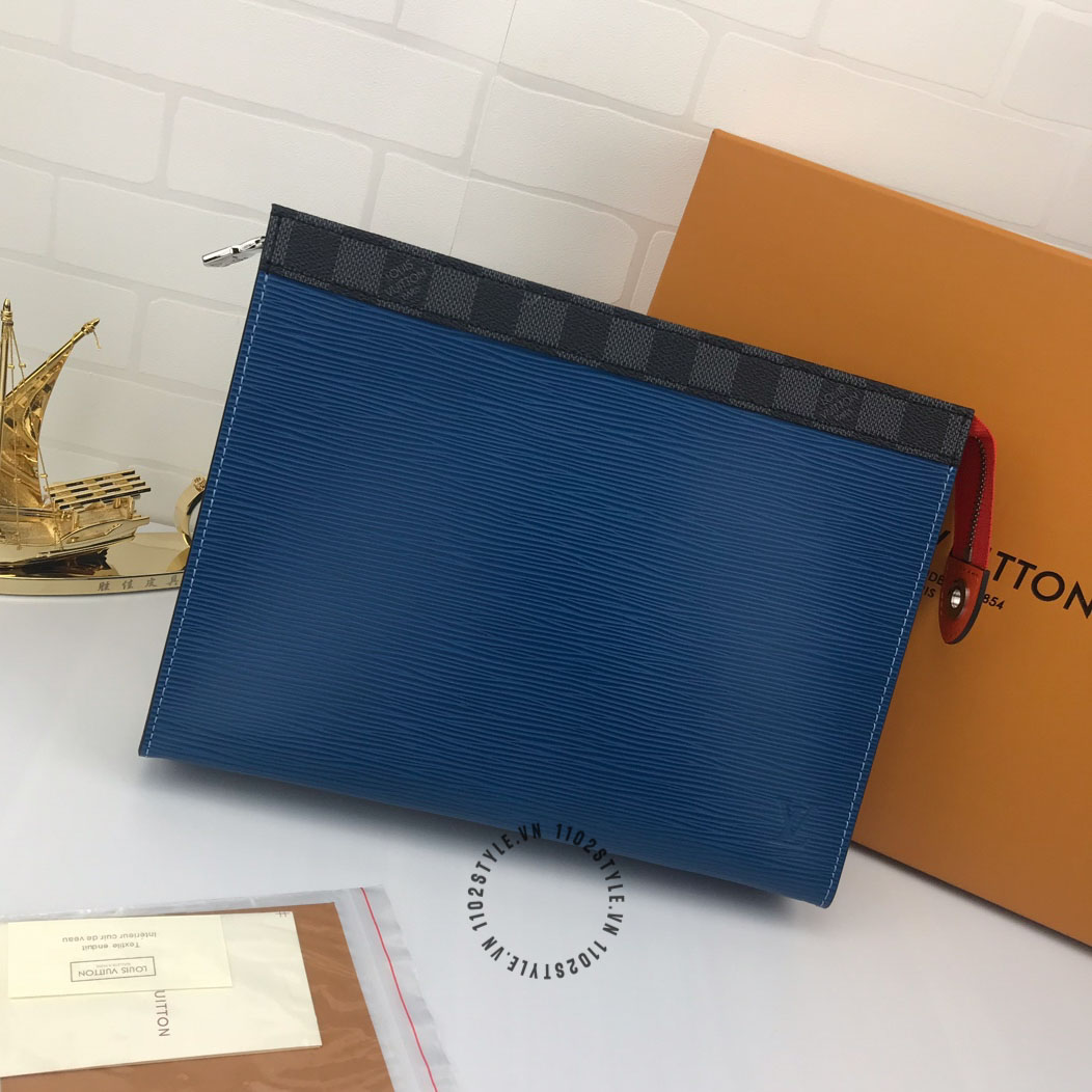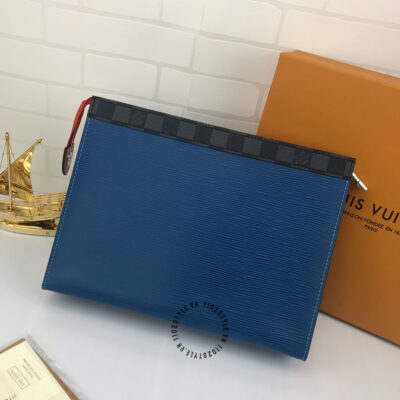 Ảnh chi tiết clutch LV cầm tay nam hàng hiệu da epi màu xanh bản cao cấp :