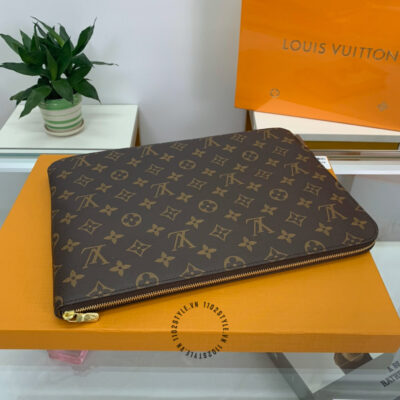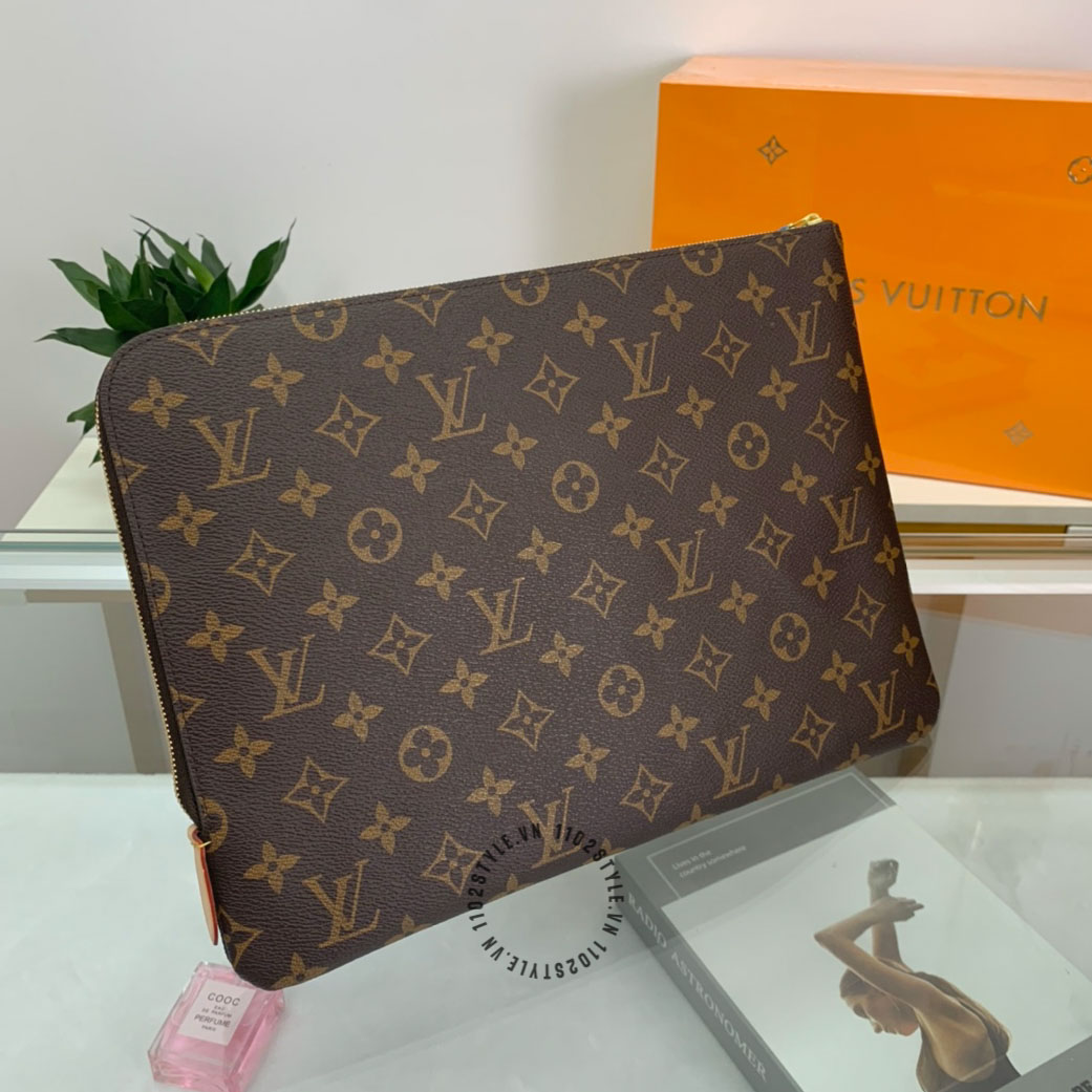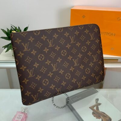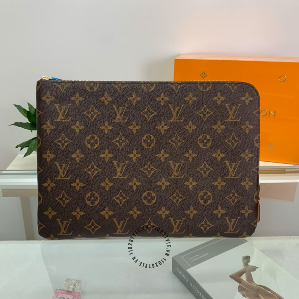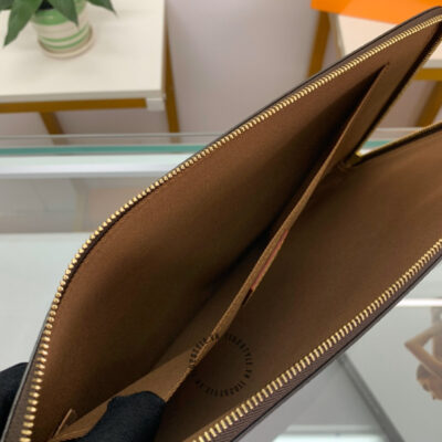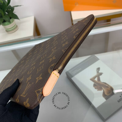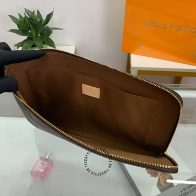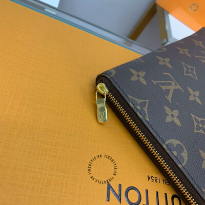 Ảnh chi tiết clutch Lv nam da xịn màu nâu họa tiết monogram cao cấp: