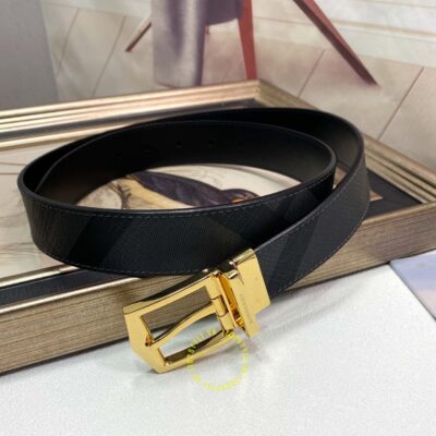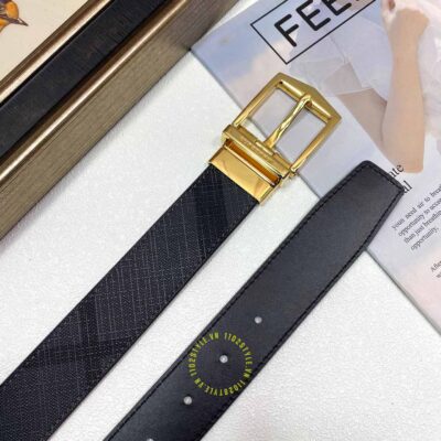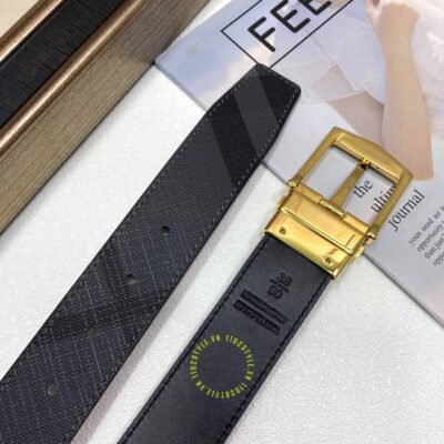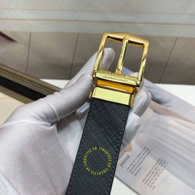Hình chi tiết dây lưng Burberry super fake khóa xỏ kim màu vàng dây ghi đen: