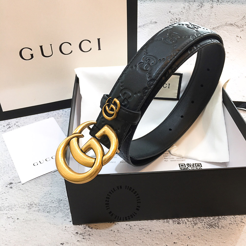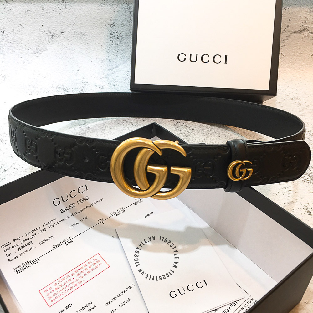 Hình ảnh chi tiết dây lưng hàng hiệu Gucci mặt khóa màu vàng dây họa tiết cao cấp: