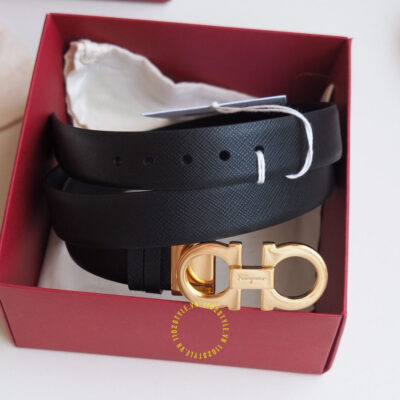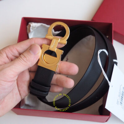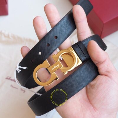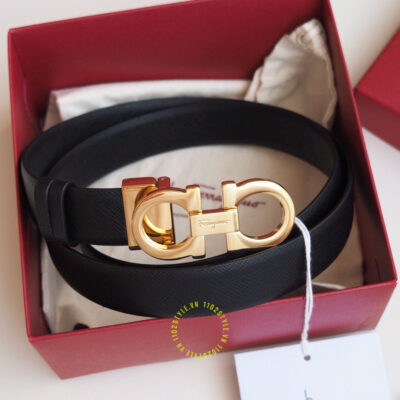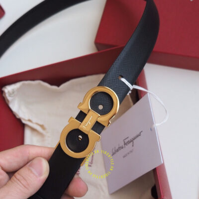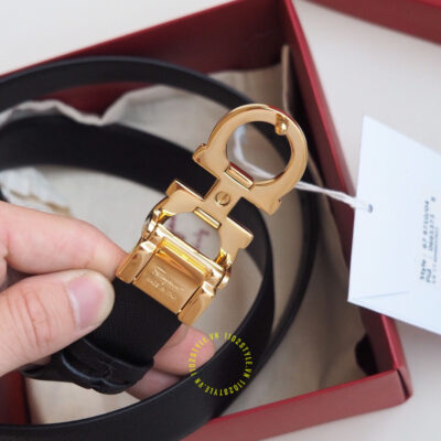 Hình ảnh dây lưng Salvatore Ferragamo nữ rep 1:1 chính hãng mặt vàng dây đen: