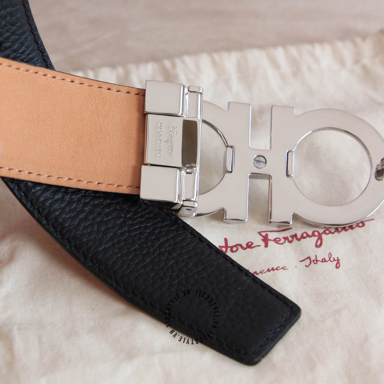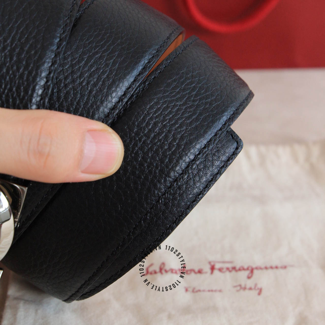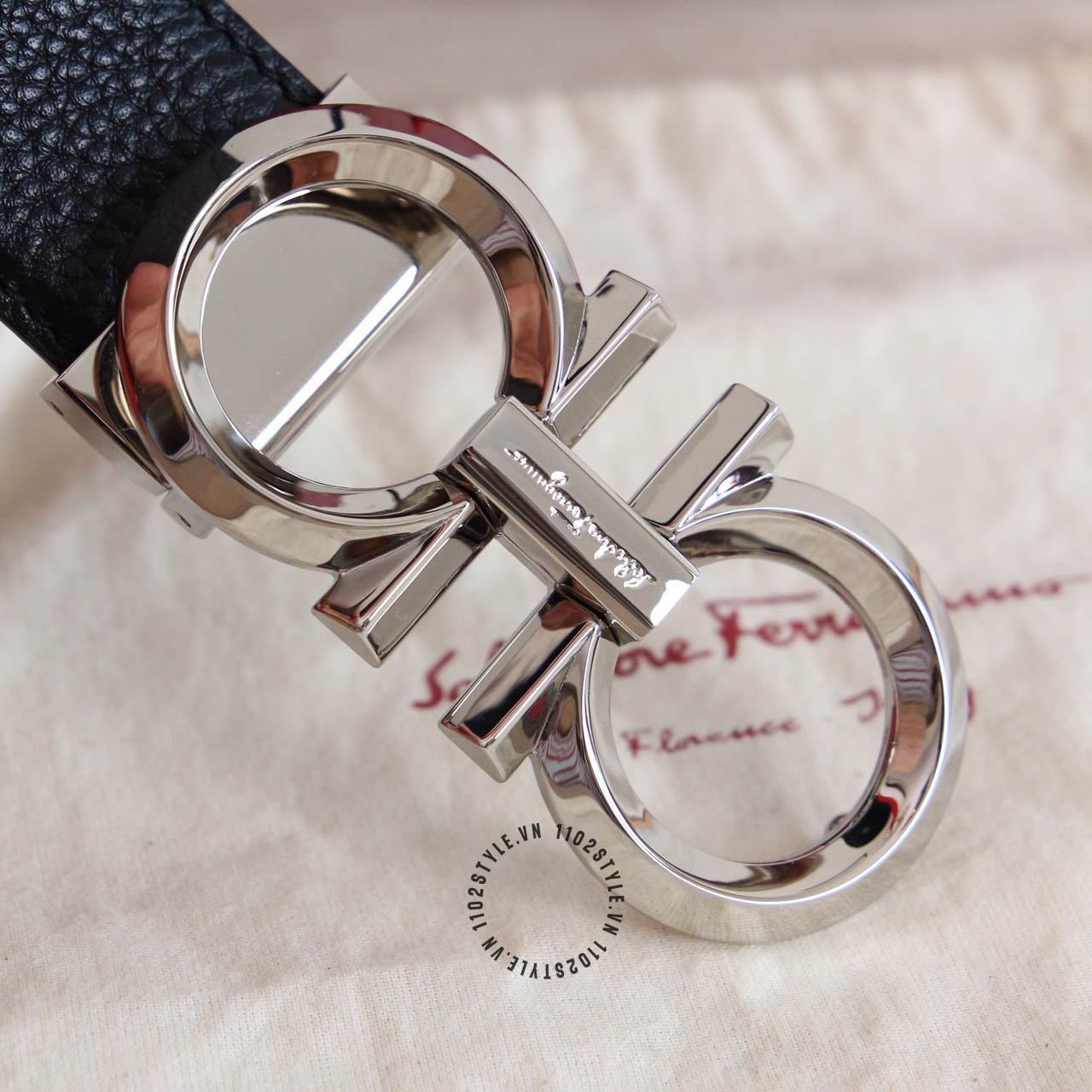 Ảnh chi tiết dây nịt Salvatore Ferragamo da thặt mặt khoá bạc cao cấp Luxury :