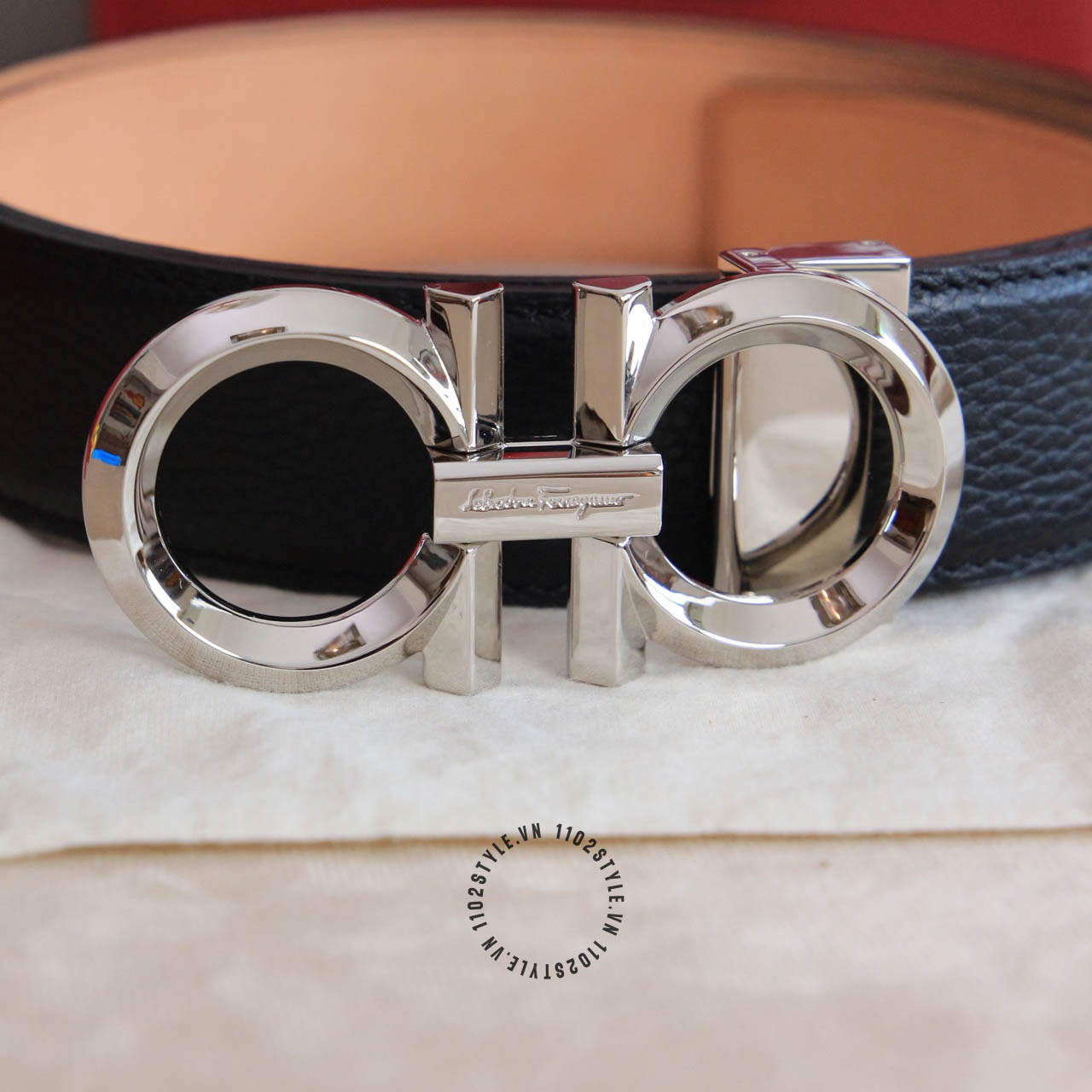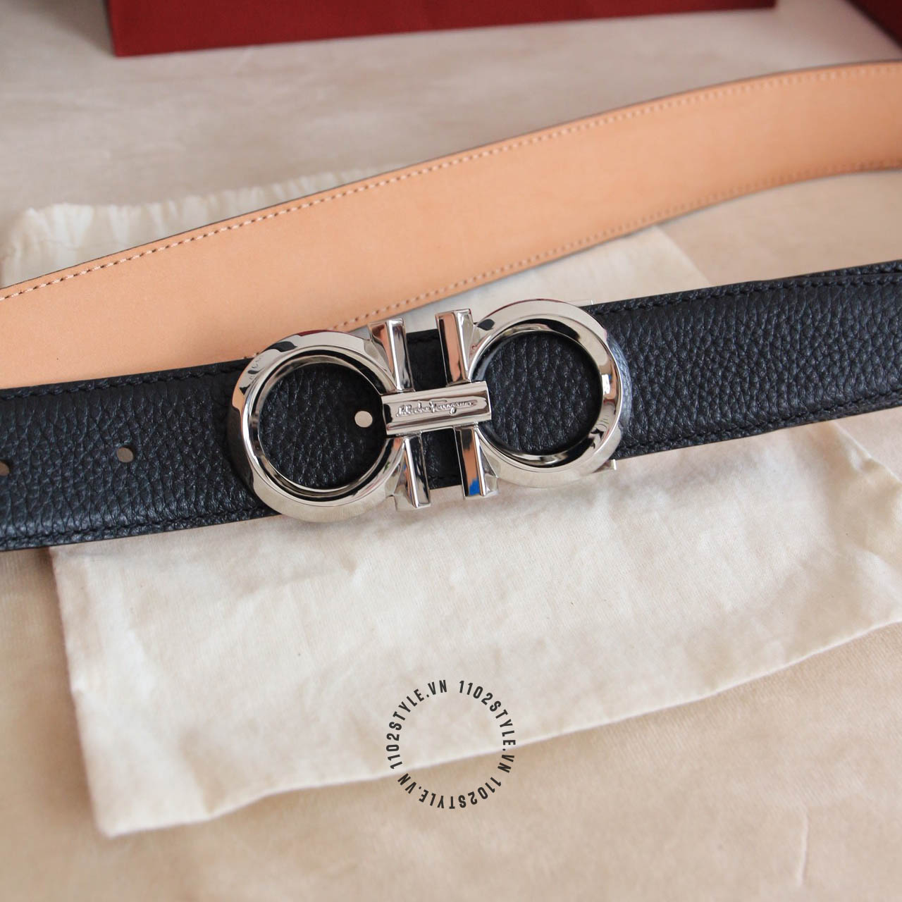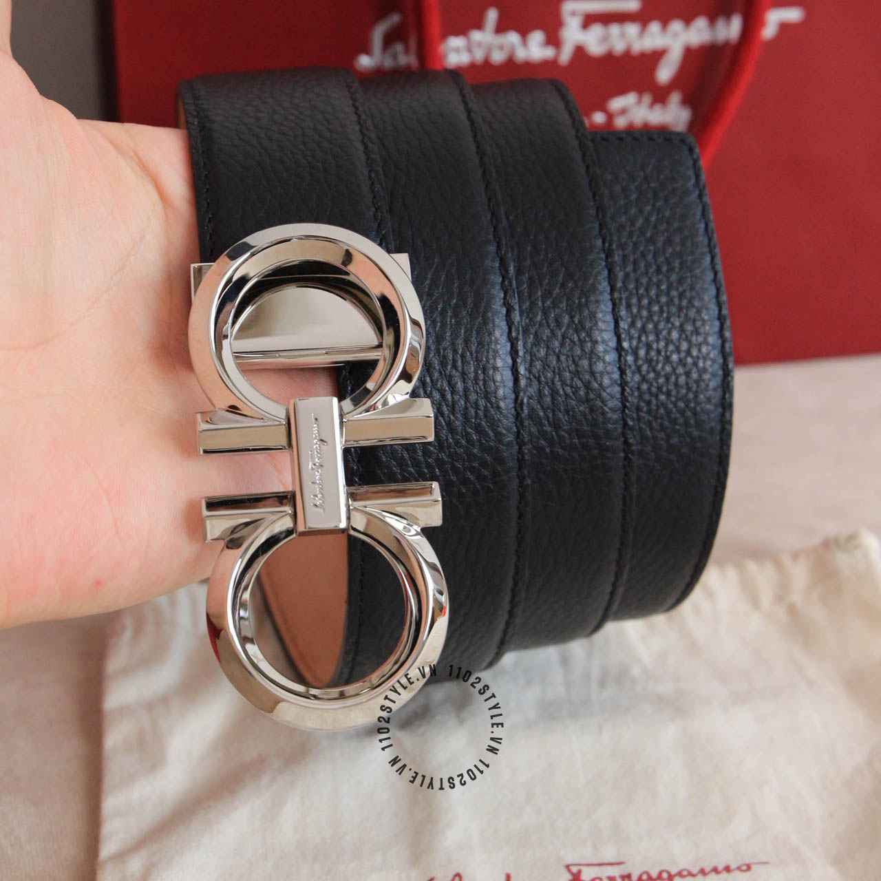Ảnh chi tiết dây nịt Salvatore Ferragamo da thặt mặt khoá bạc cao cấp Luxury :
