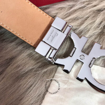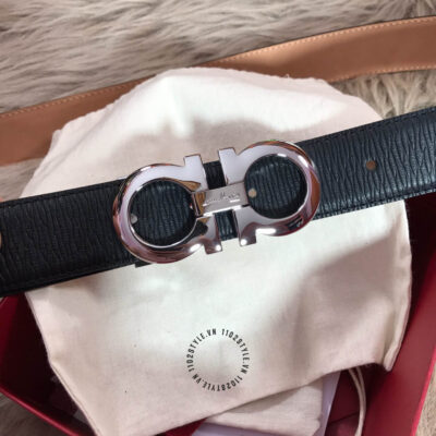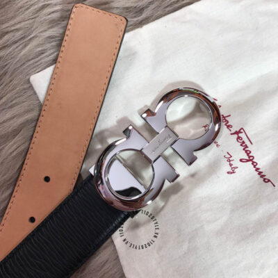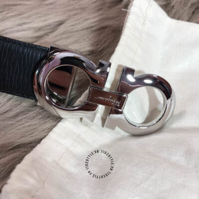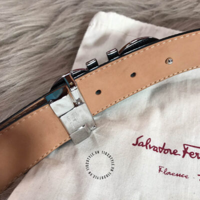 Ảnh mô tả chi tiết dây nịt Salvatore Ferragamo mặt khoá bạc dây da sần :