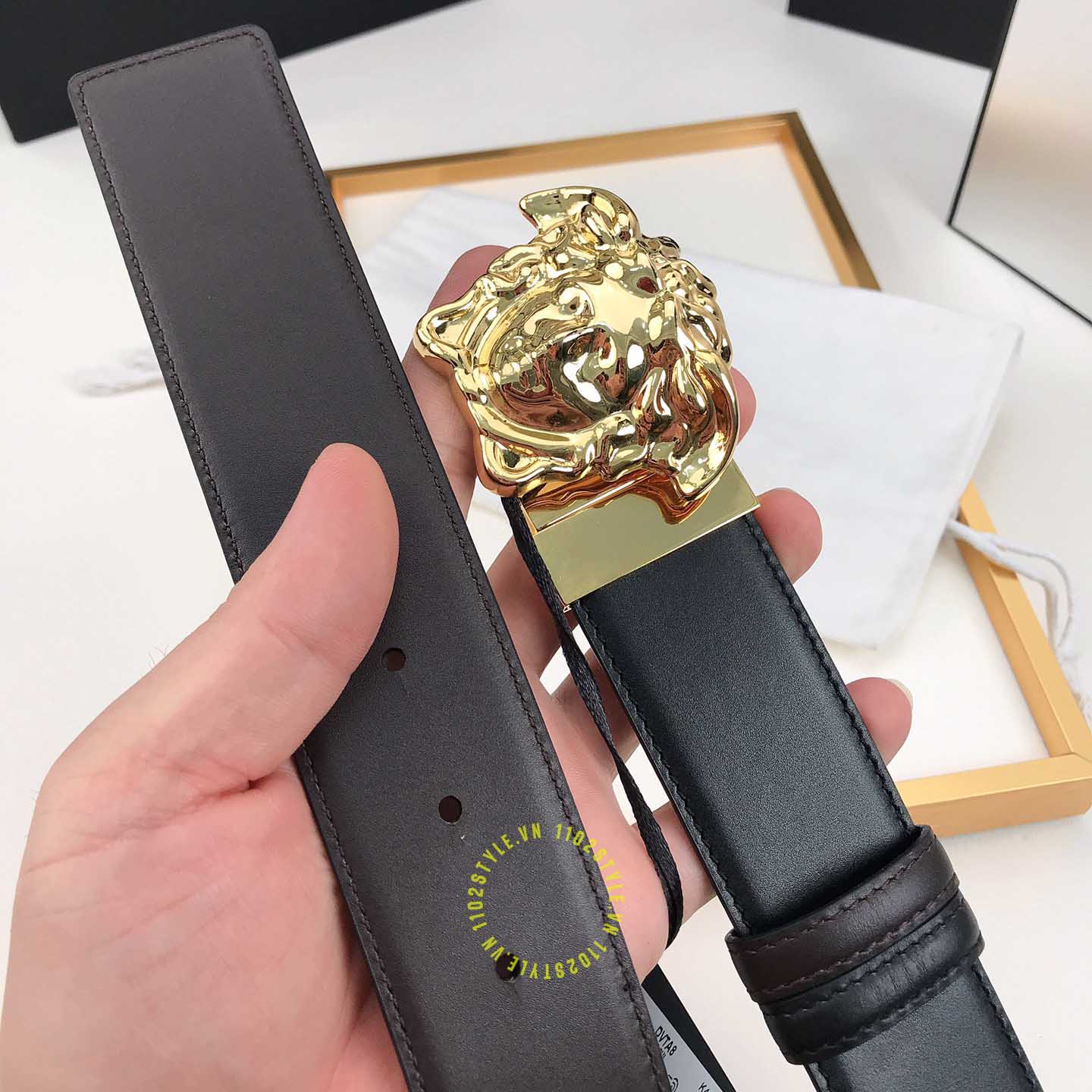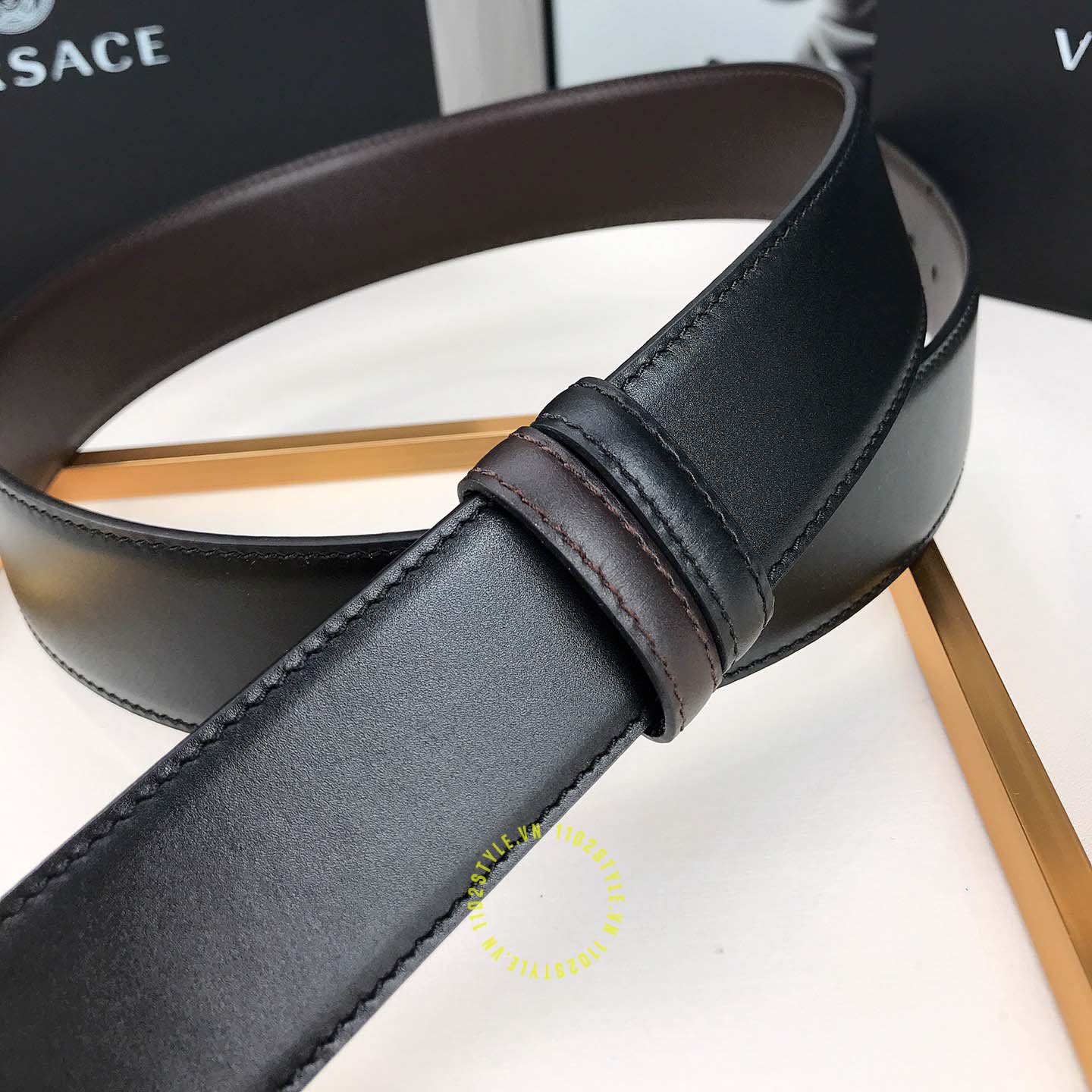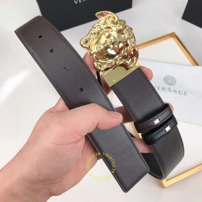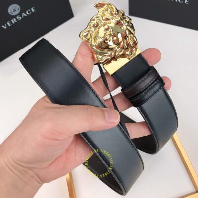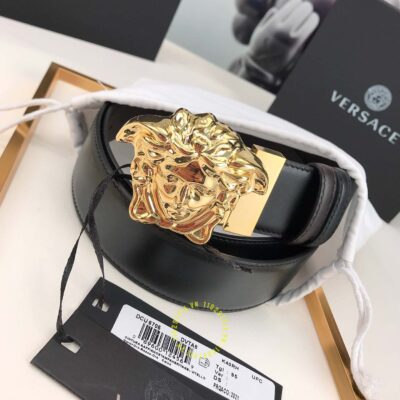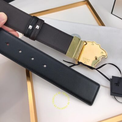 Ảnh sản phẩm dây nịt Versace mặt khóa vàng dây da trơn cao cấp màu đen:
