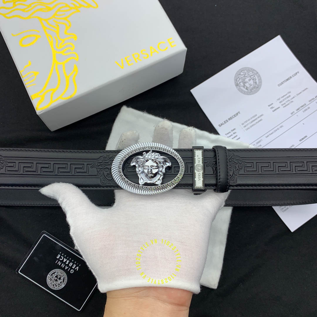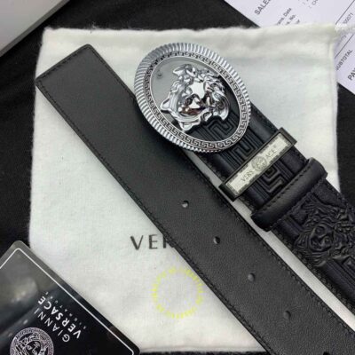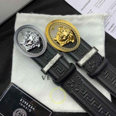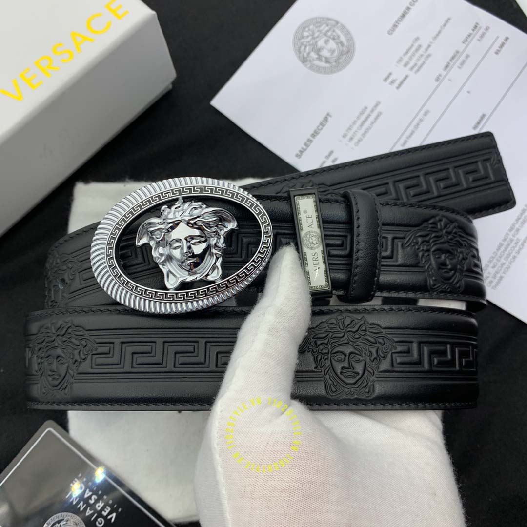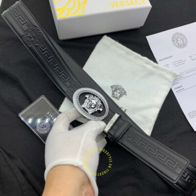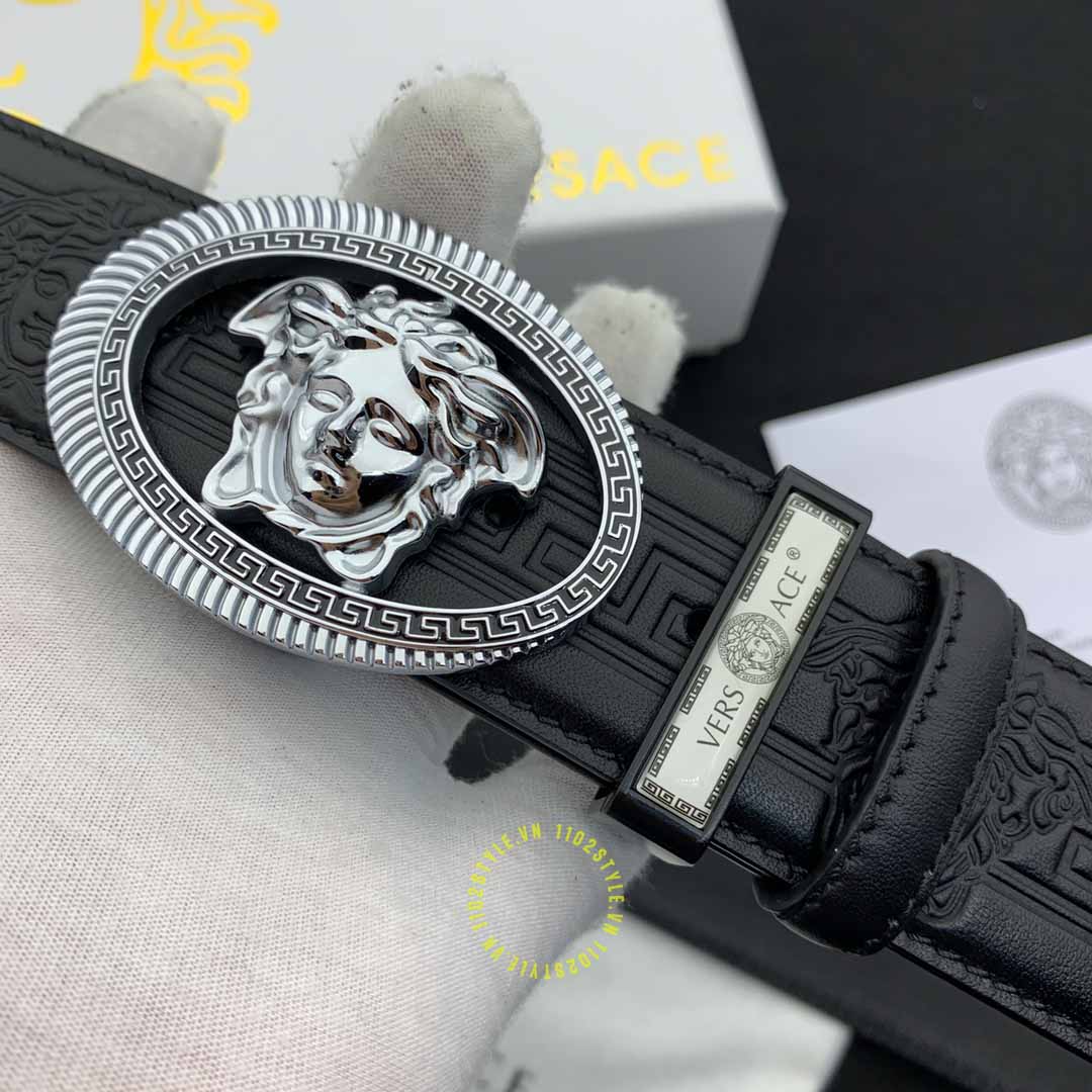 Ảnh sản phẩm dây nịt Versace rep 1:1 chính hãng mặt ghi dây đen phối họa tiết: