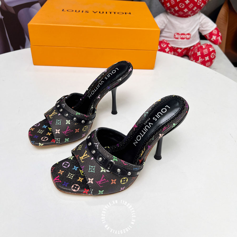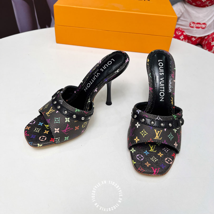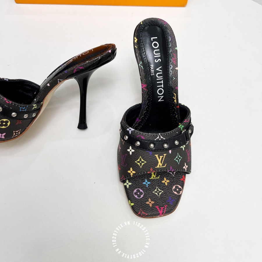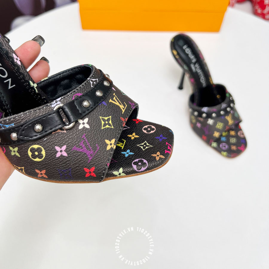Dép cao gót LV hoạ tiết màu đen hàng hiệu LV01D
