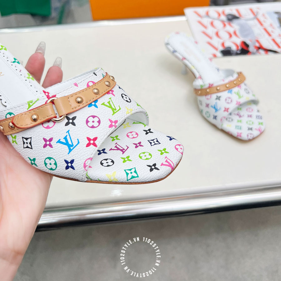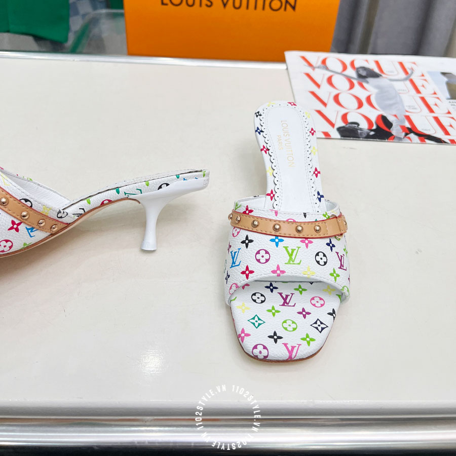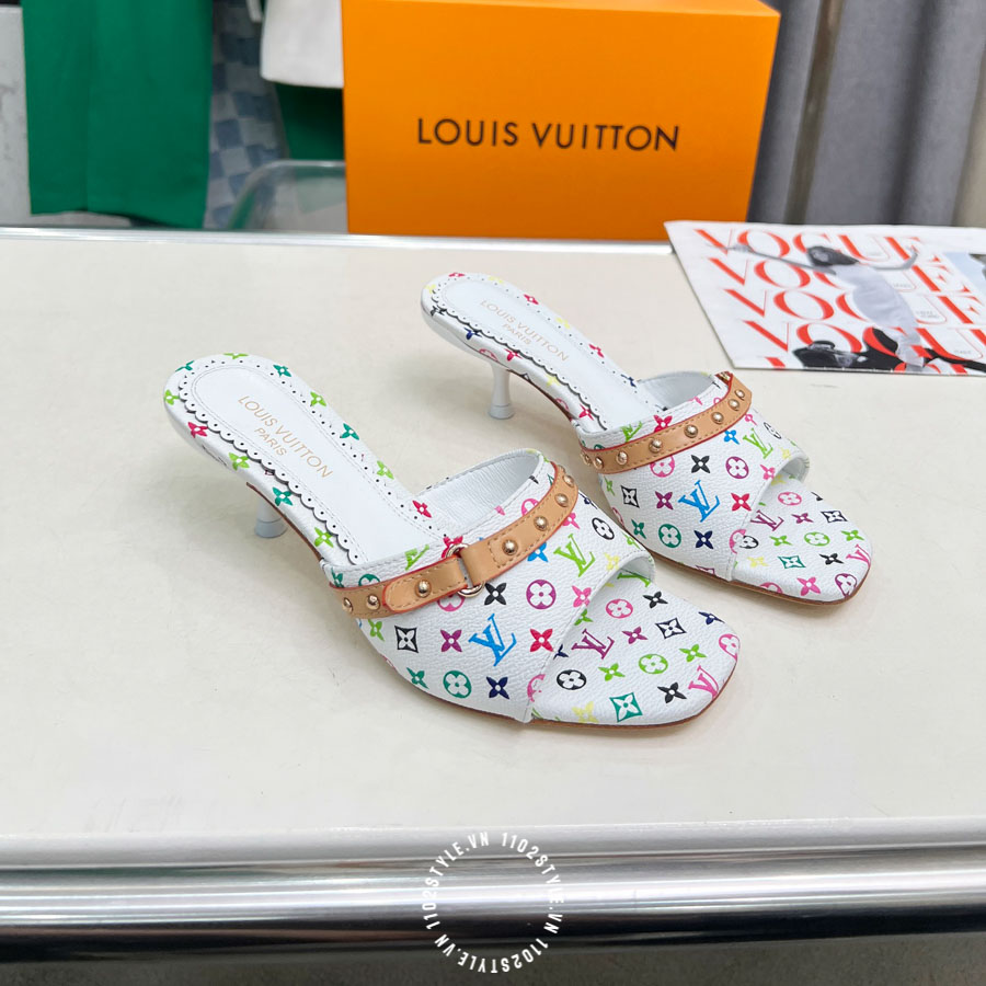 Dép cao gót LV hoạ tiết màu trắng cao cấp LV08D