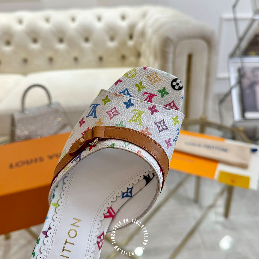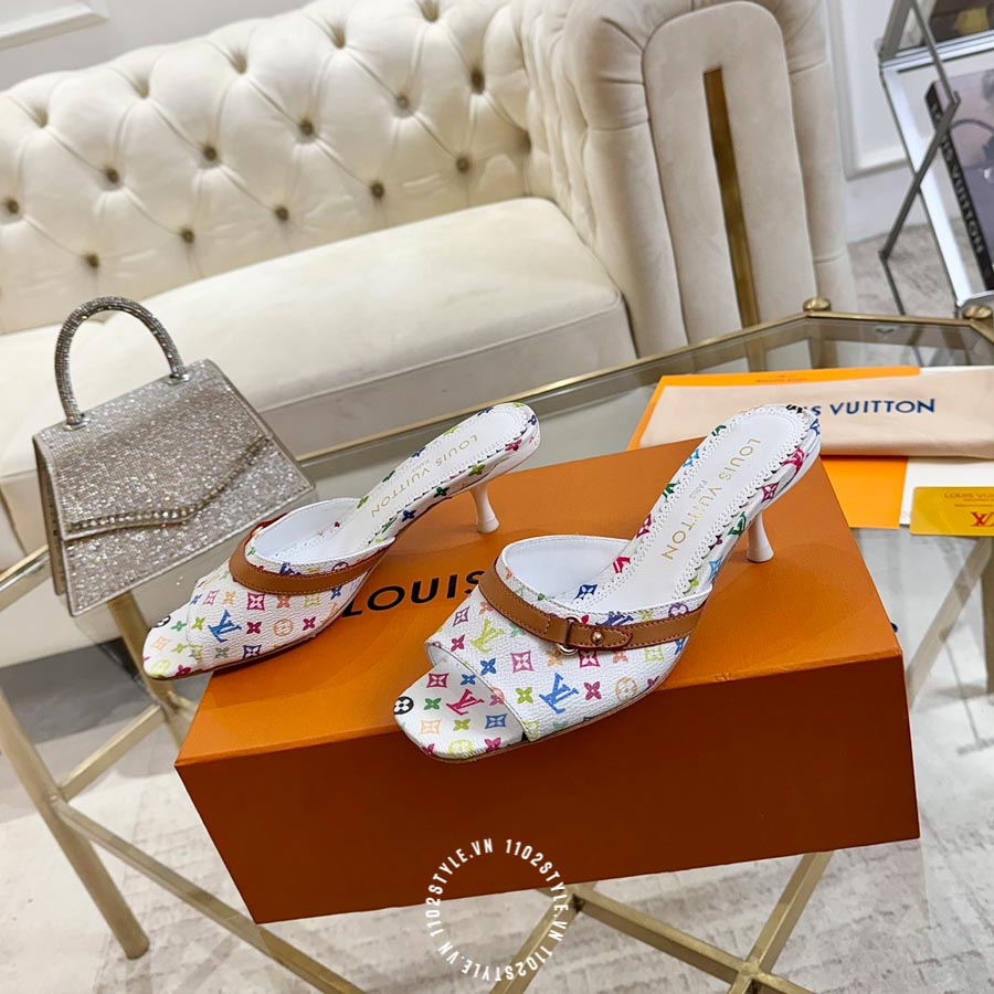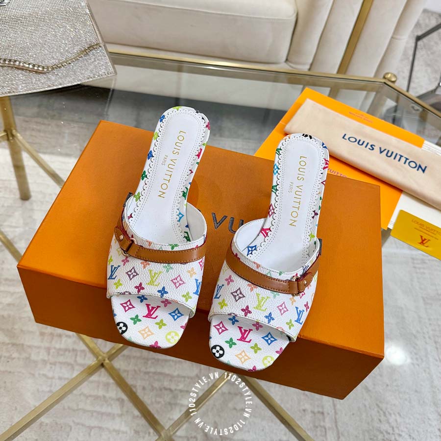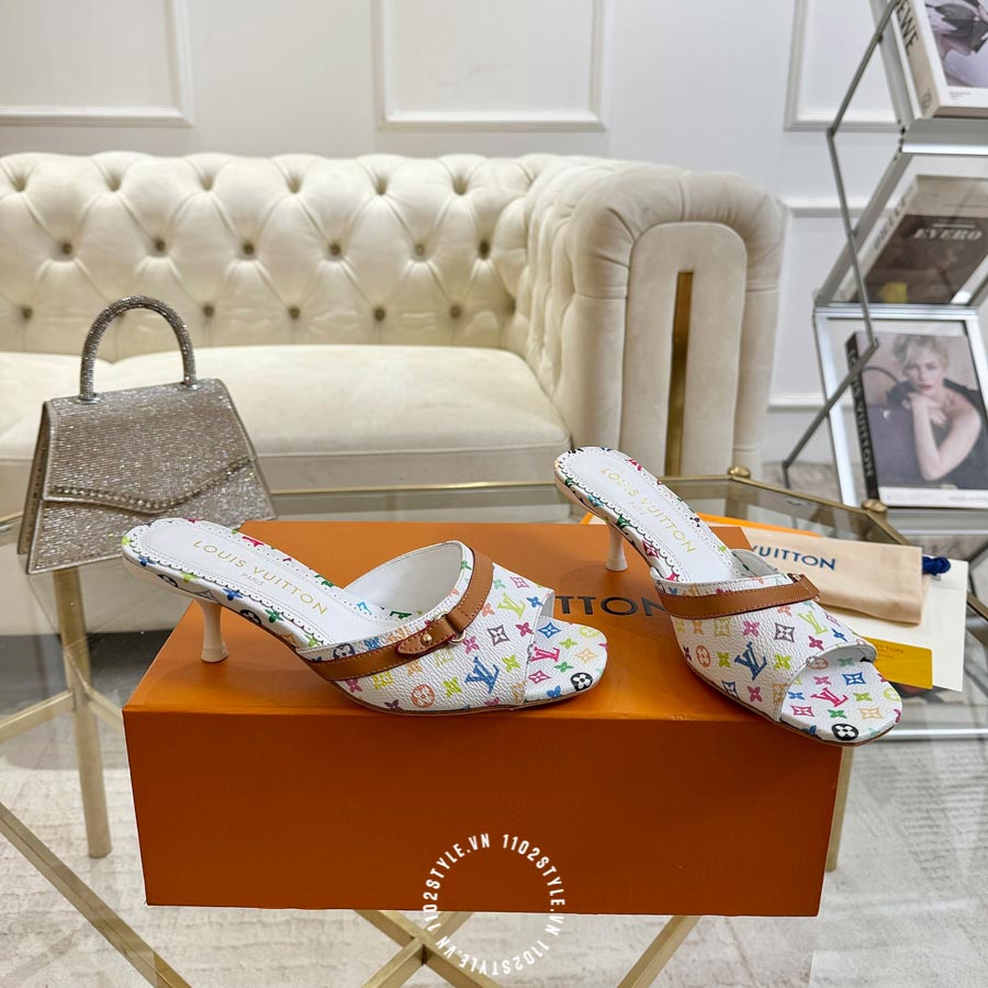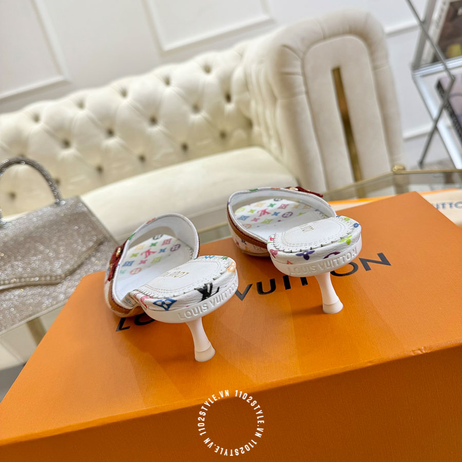 Dép cao gót LV hoạ tiết màu trắng cao cấp LV09C