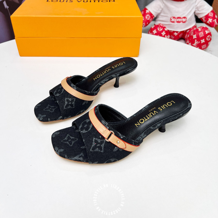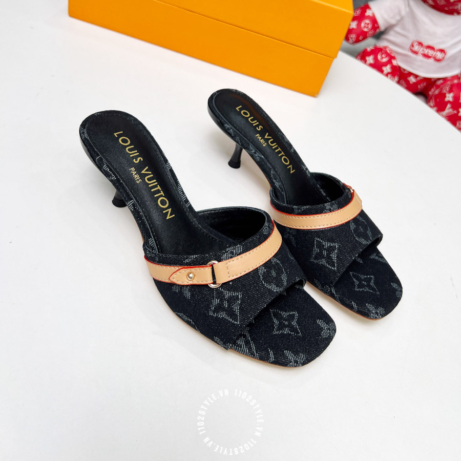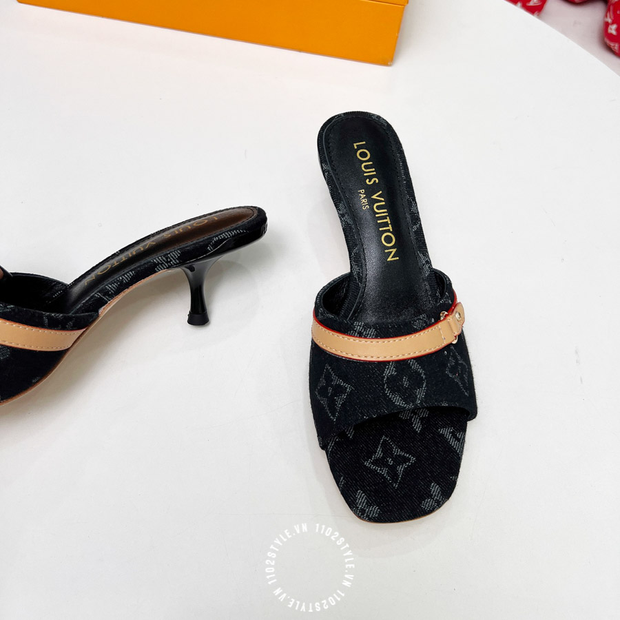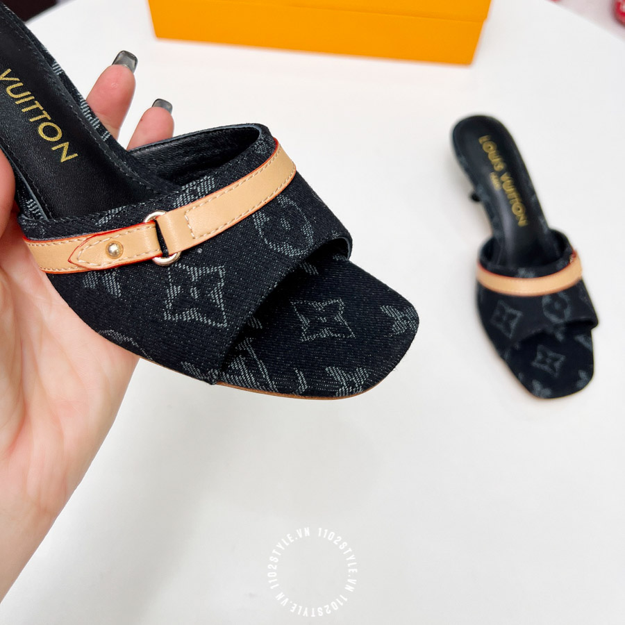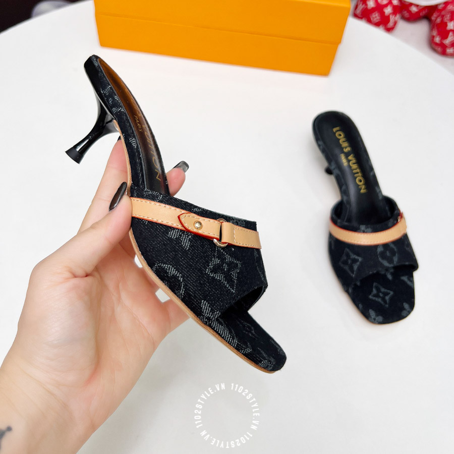 Dép cao gót LV vải sần màu đen hàng hiệu LV06C