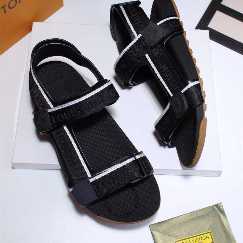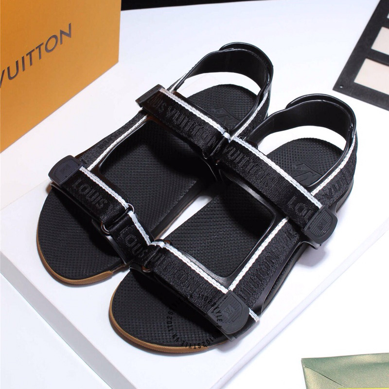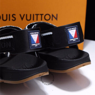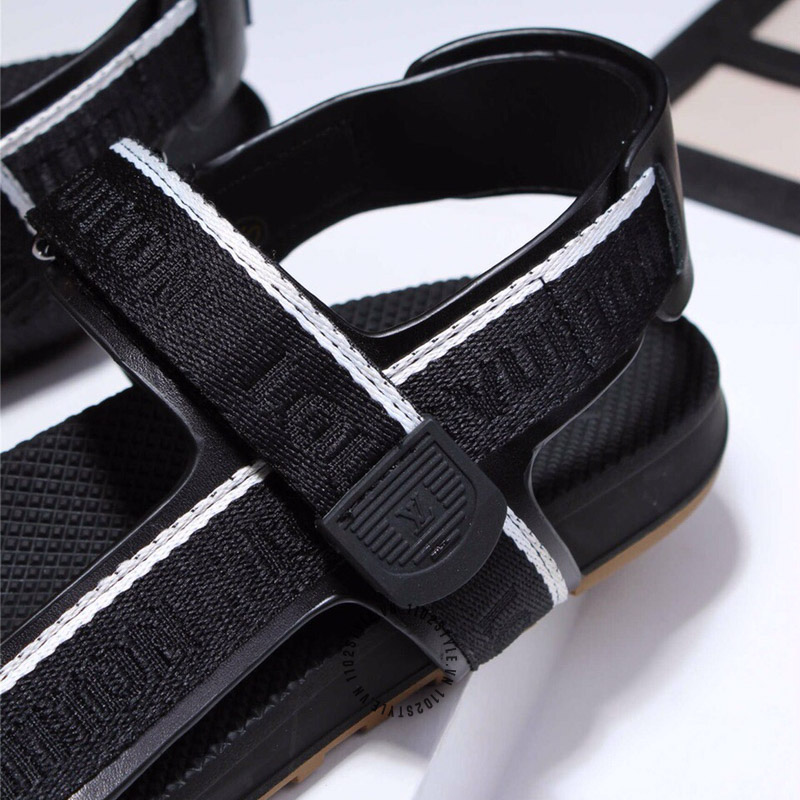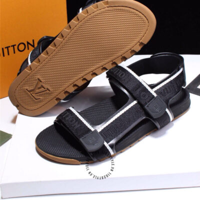 Ảnh mô tả dép LV hàng hiệu nam màu đen viền trắng replica 1:1 chính hãng: