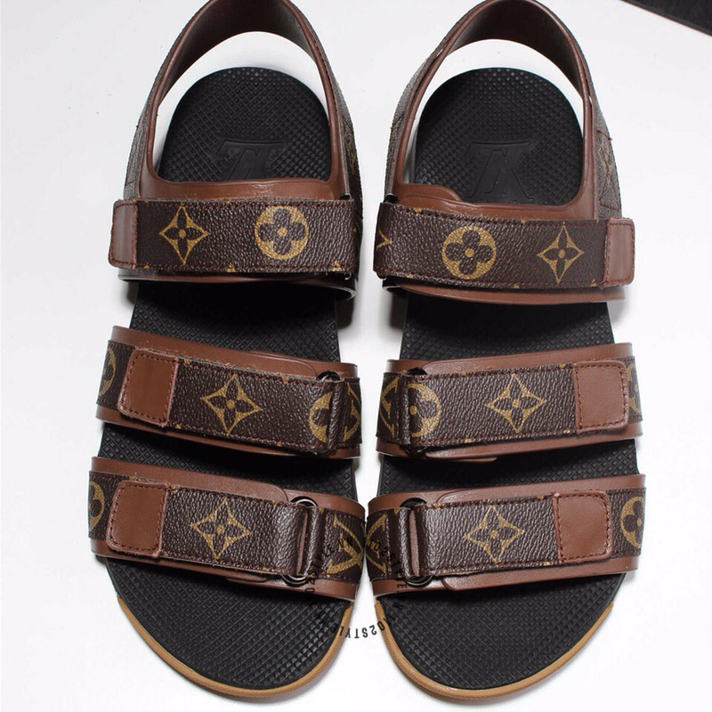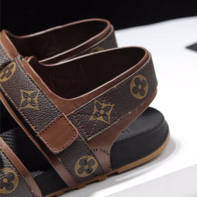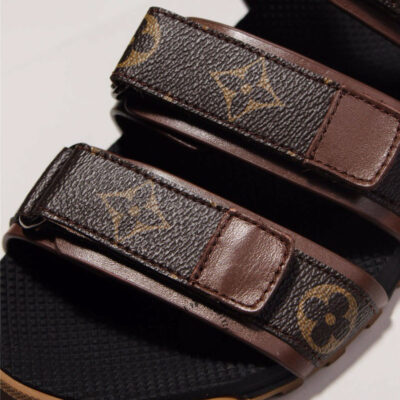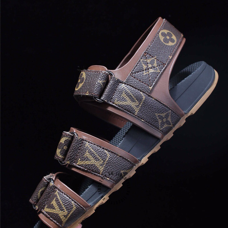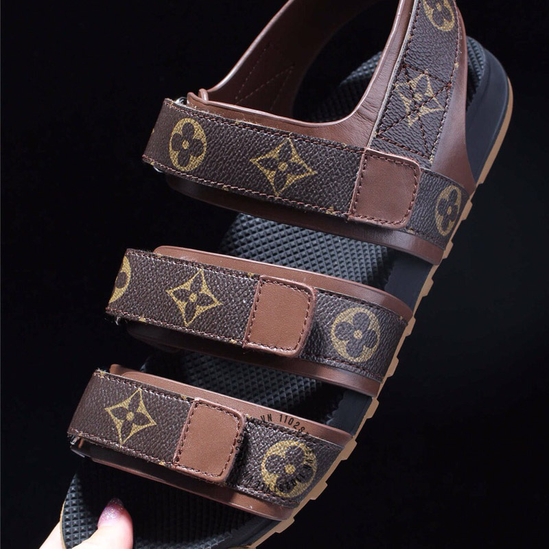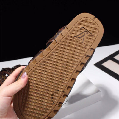 Hình ảnh mô tả dép LV hàng hiệu nam màu nâu quai họa tiết cao cấp: