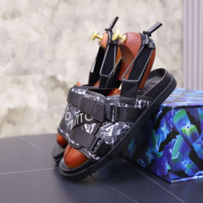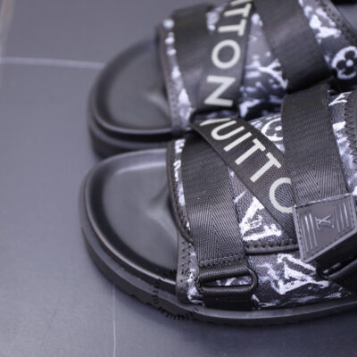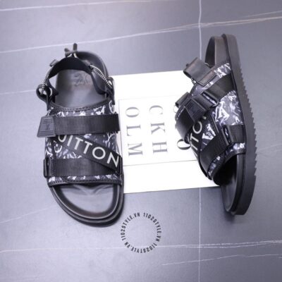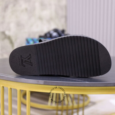 Ảnh mô tả dép nam LV quai màu đen họa tiết logo chữ dập chìm cao cấp: