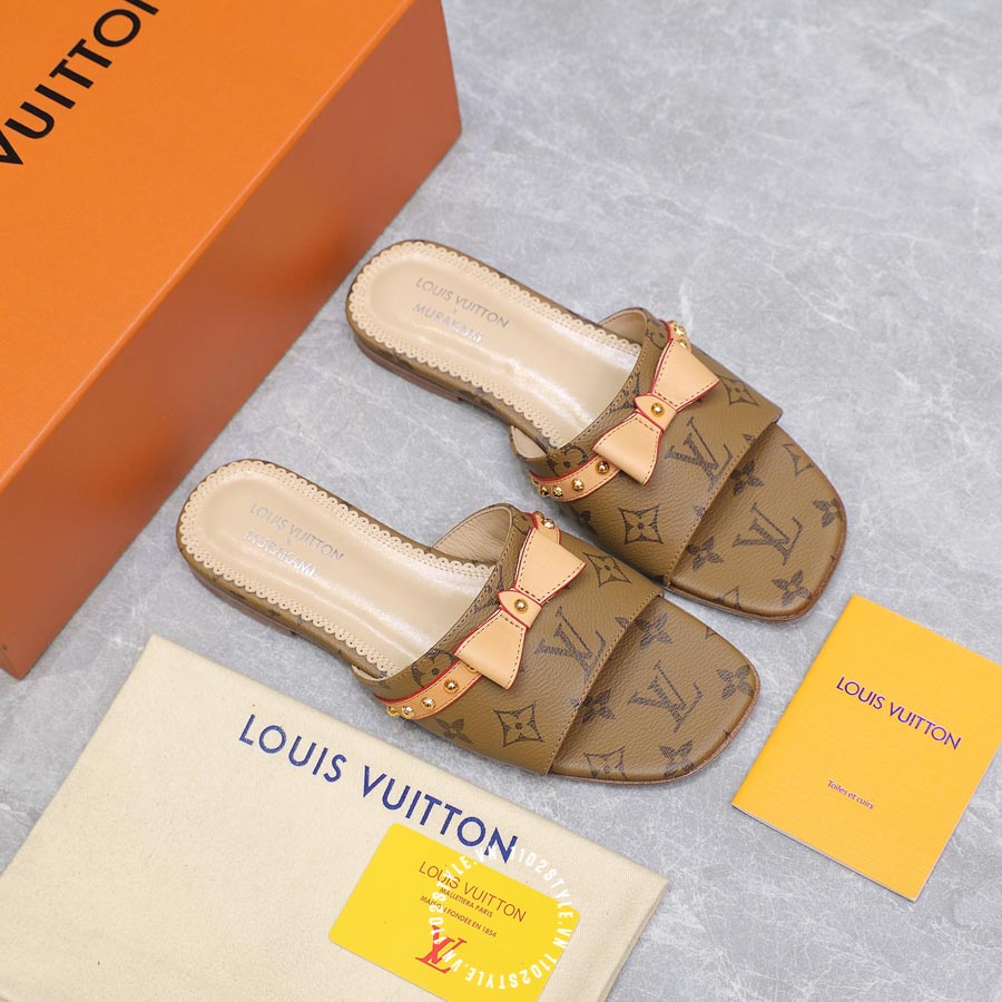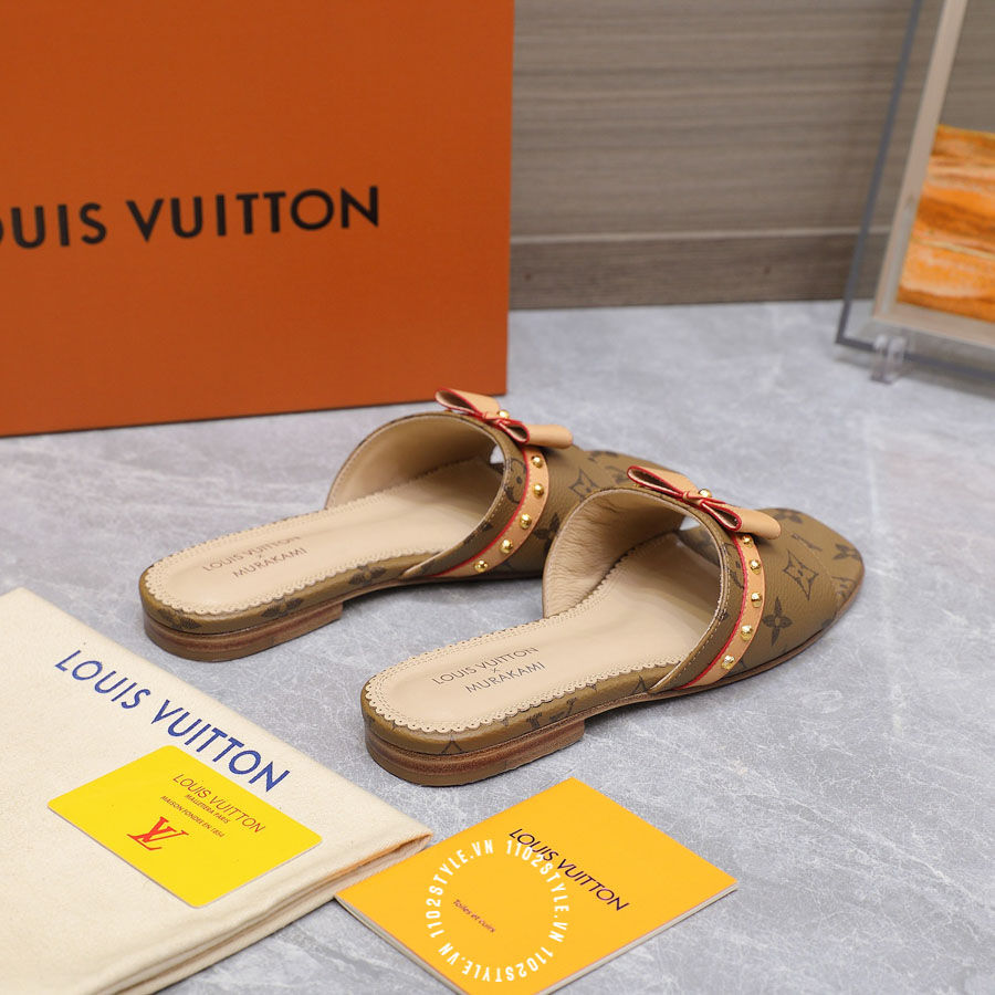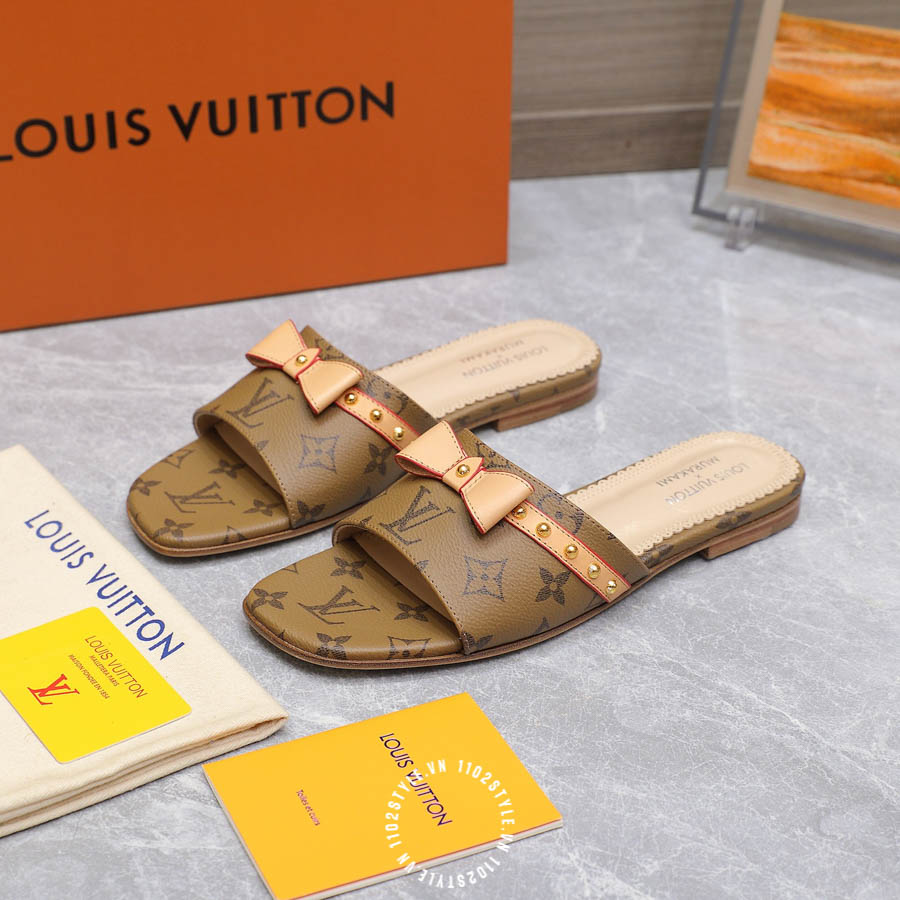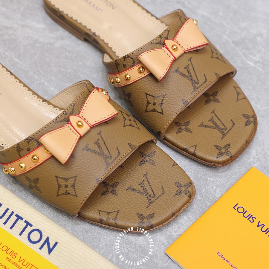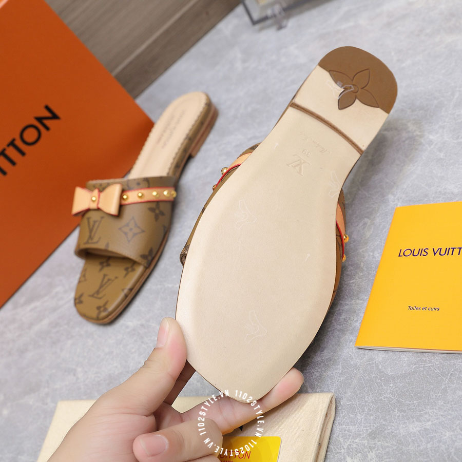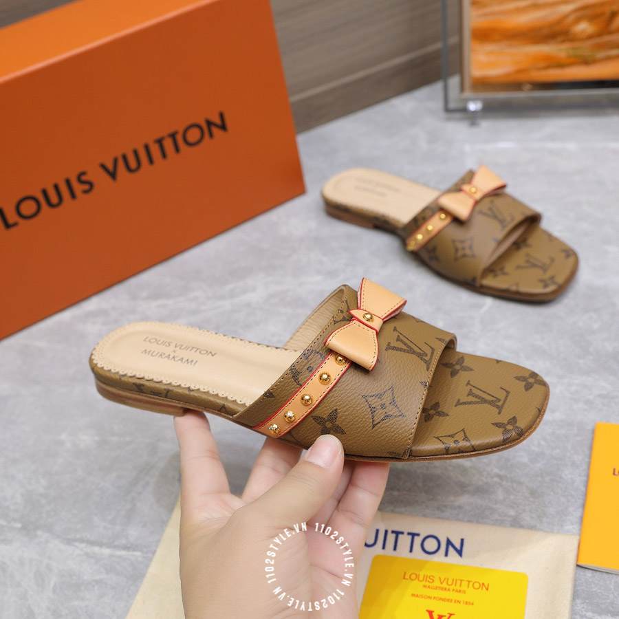 Dép quai ngang LV logo màu nâu cao cấp HUHU04