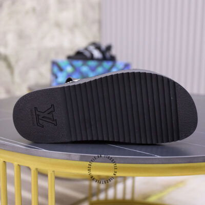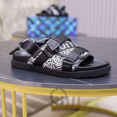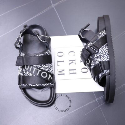Ảnh sản phẩm dép sandal LV nam quai màu đen phối họa tiết rep 1:1 chính hãng: