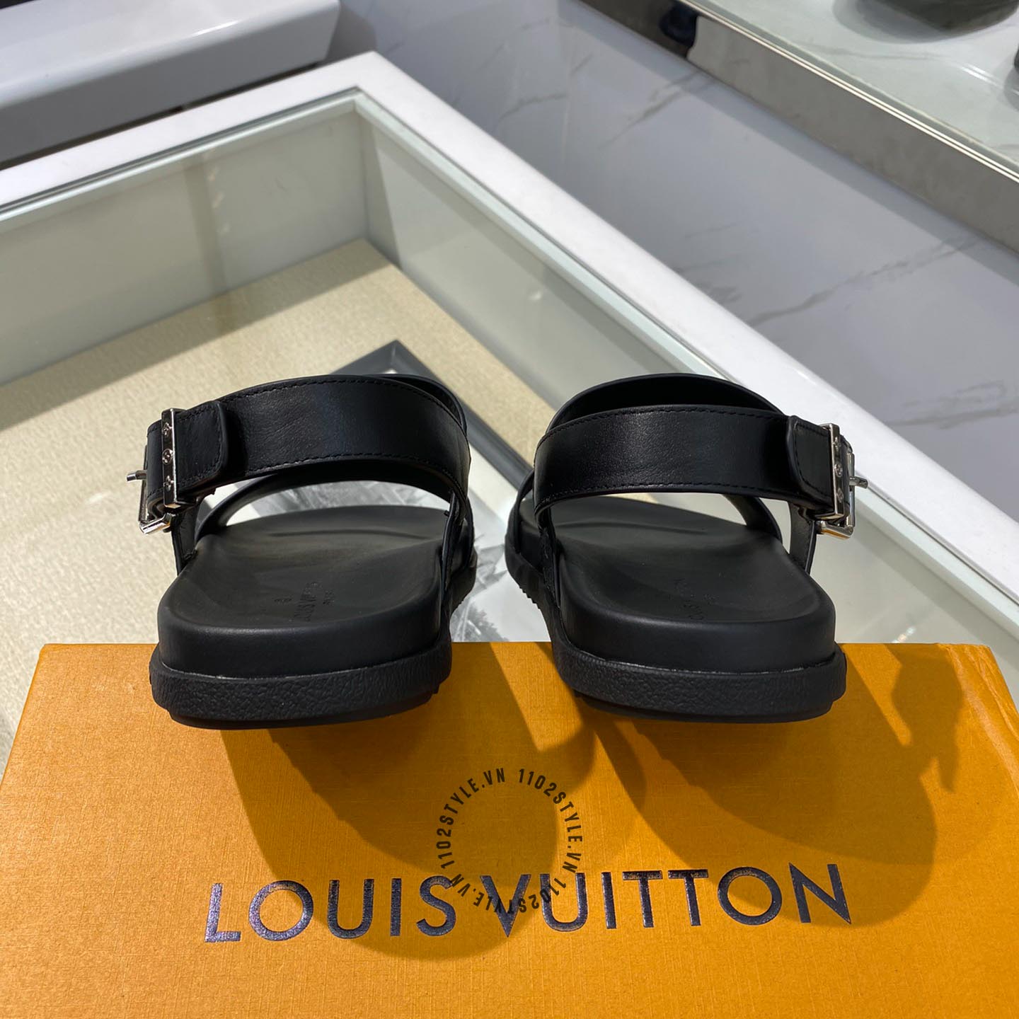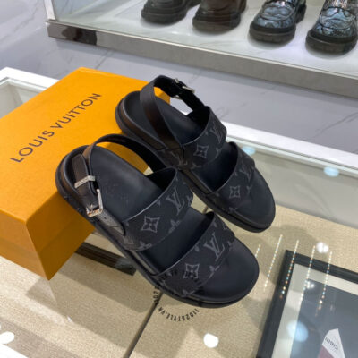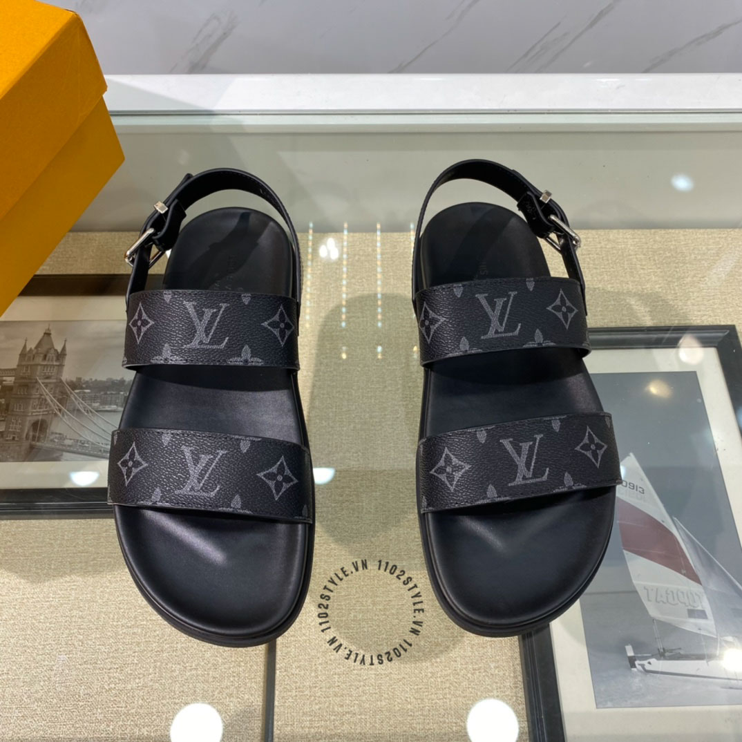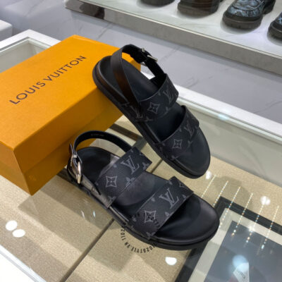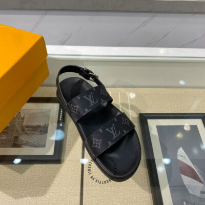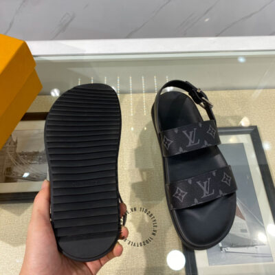 Hình ảnh sản phẩm dép sandal LV nam replica 1:1 chính hãng màu đen quai họa tiết: