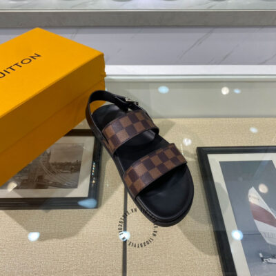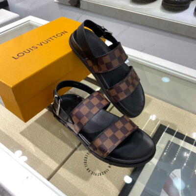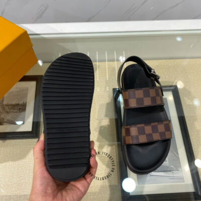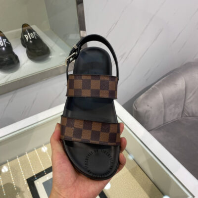 Ảnh sản phẩm dép sandal nam LV màu đen quai nâu họa tiết caro cao cấp: