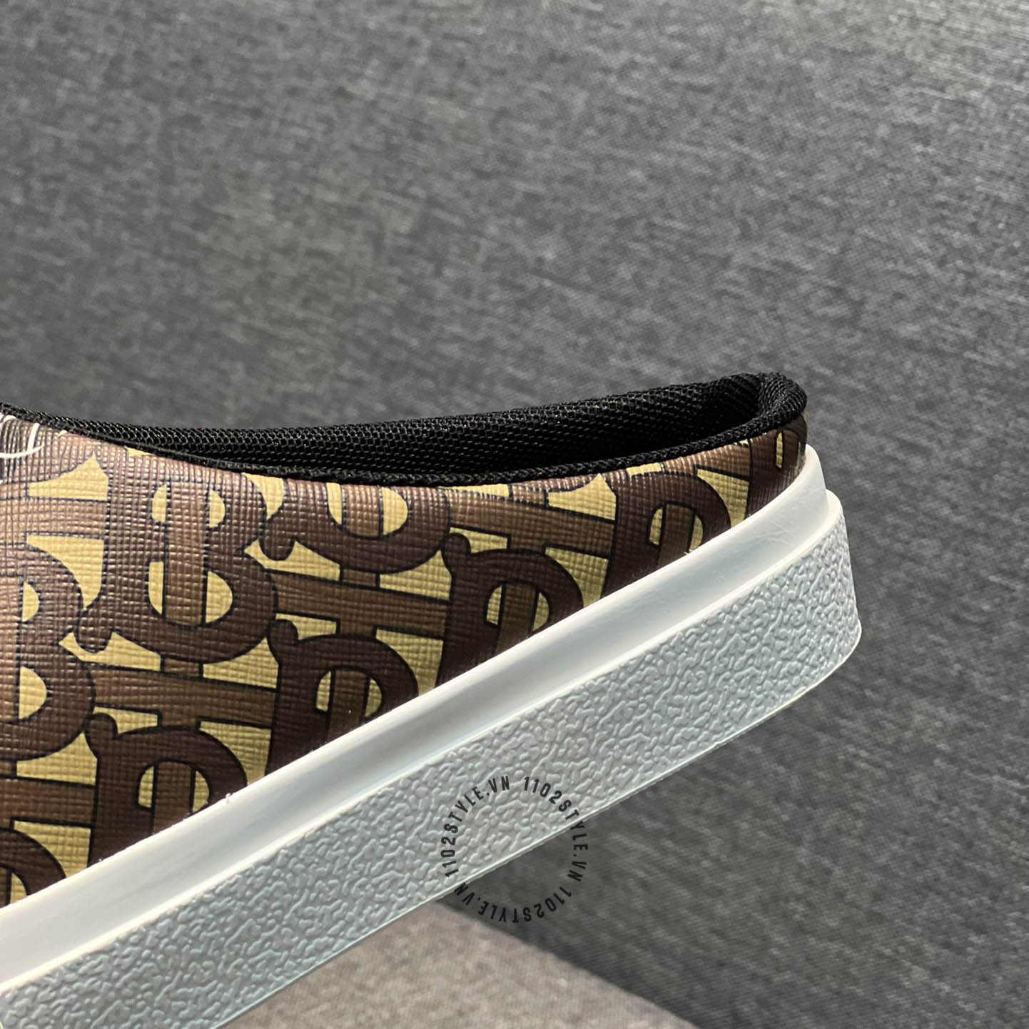 Hình ảnh mô tả chi tiết Giày Burberry đạp gót unisex họa tiết nổi bật bản hàng hiệu :