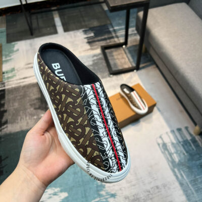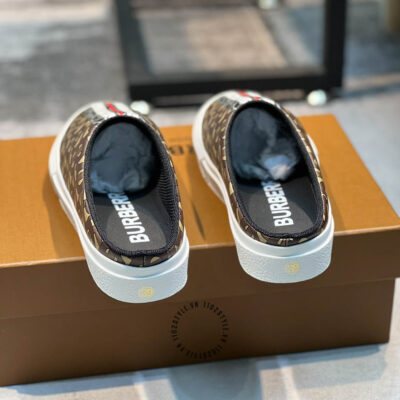 Hình ảnh mô tả chi tiết Giày Burberry đạp gót unisex họa tiết nổi bật bản hàng hiệu :