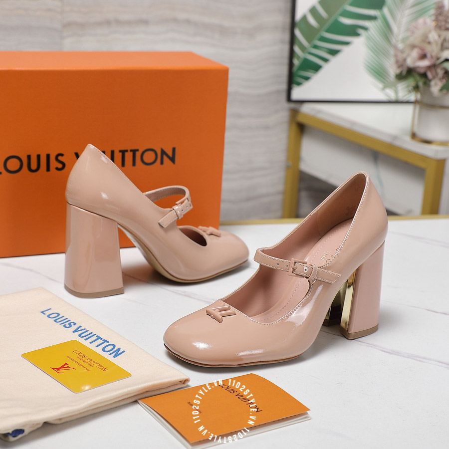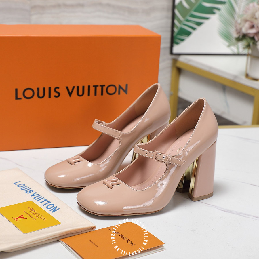 Giày cao gót LV da bóng màu be cao cấp LV02Y