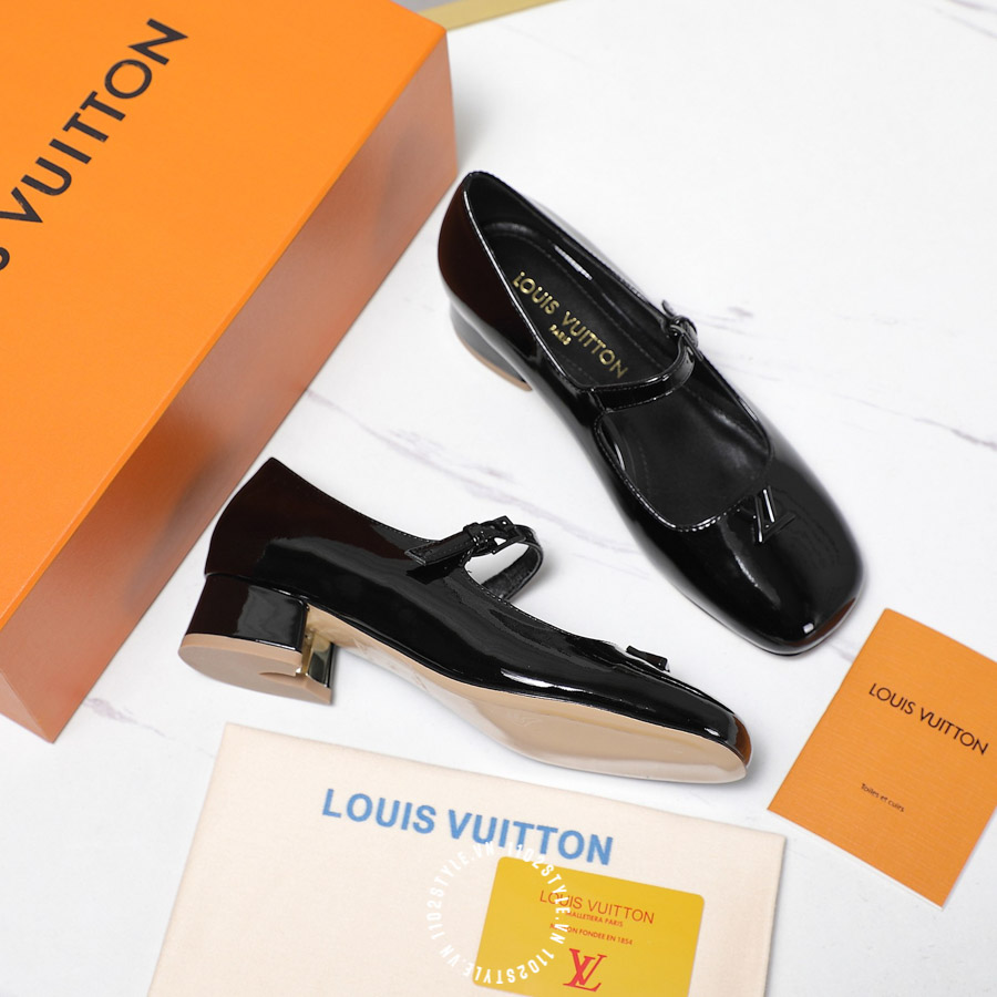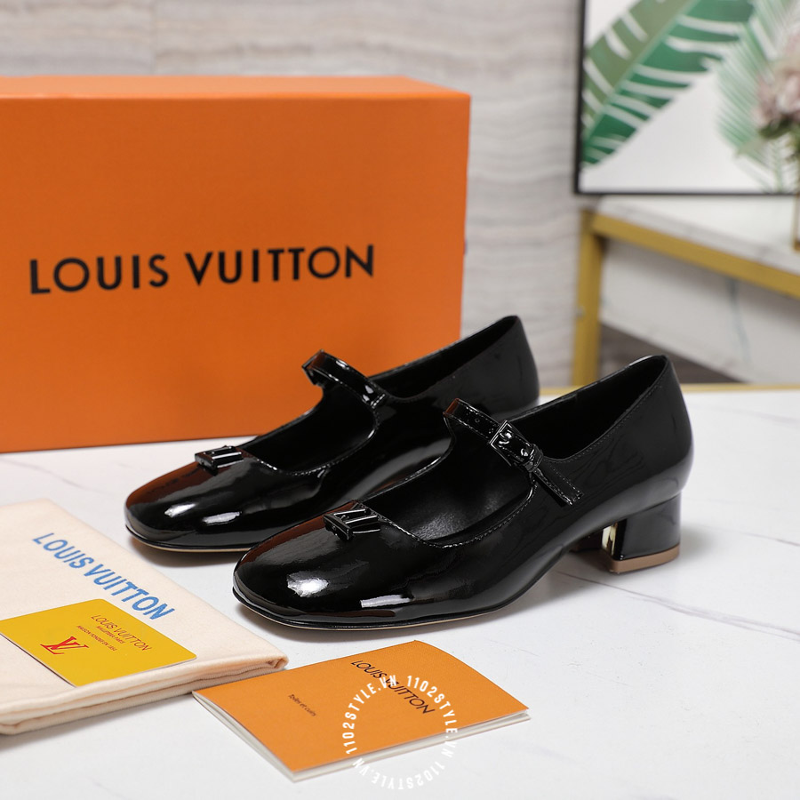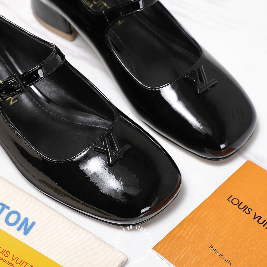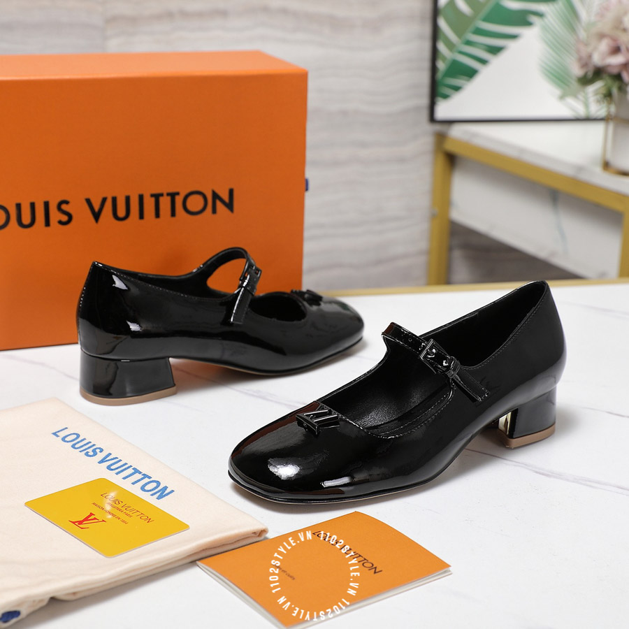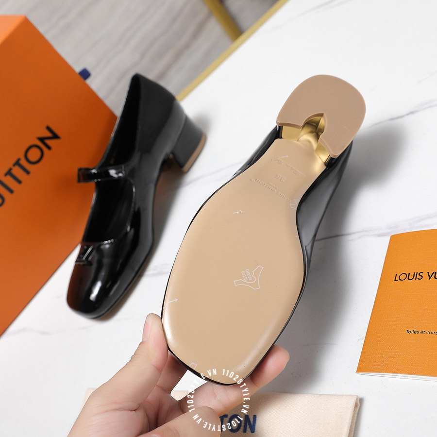 Giày cao gót LV da bóng màu đen hàng hiệu LV05T