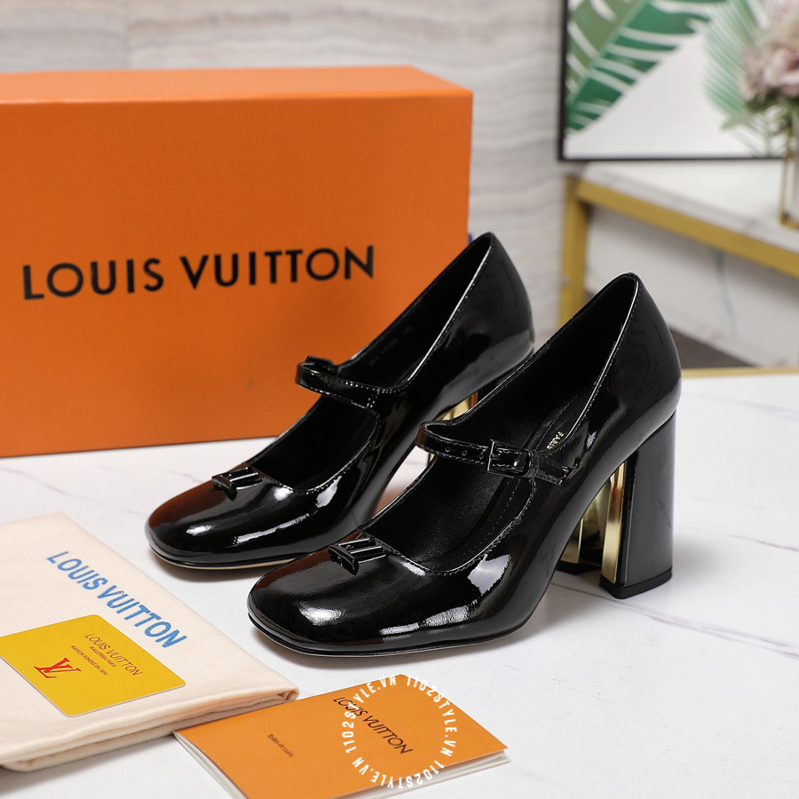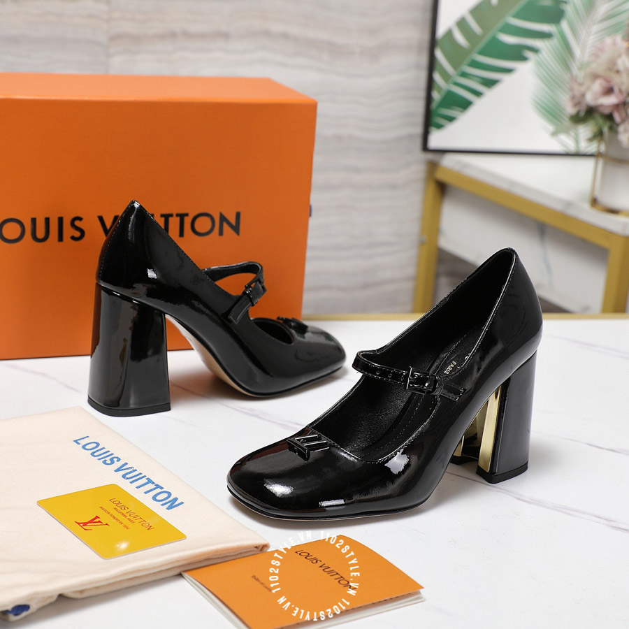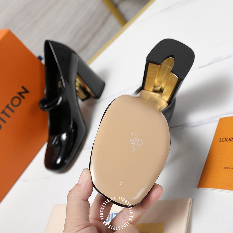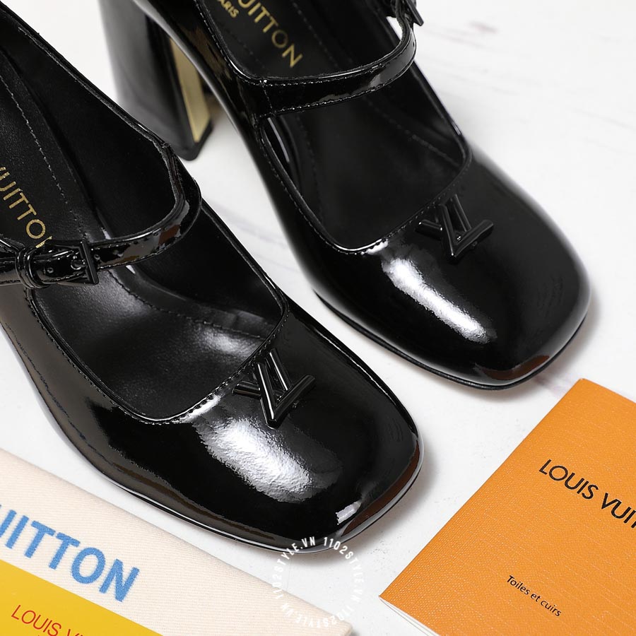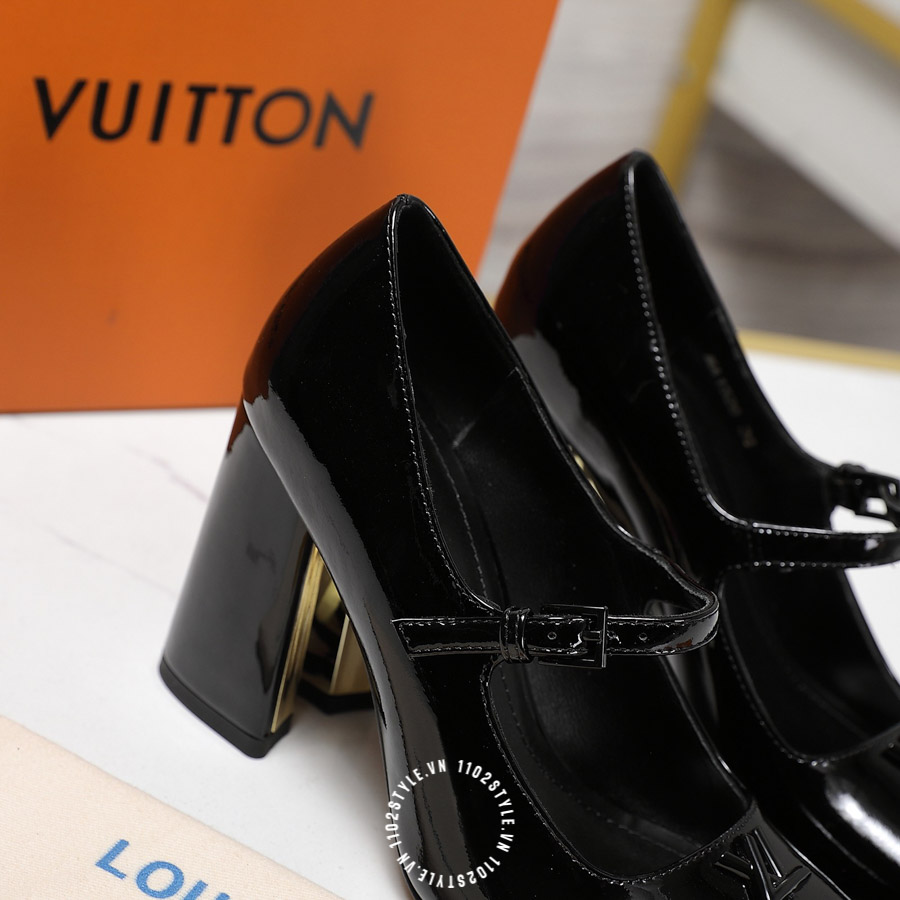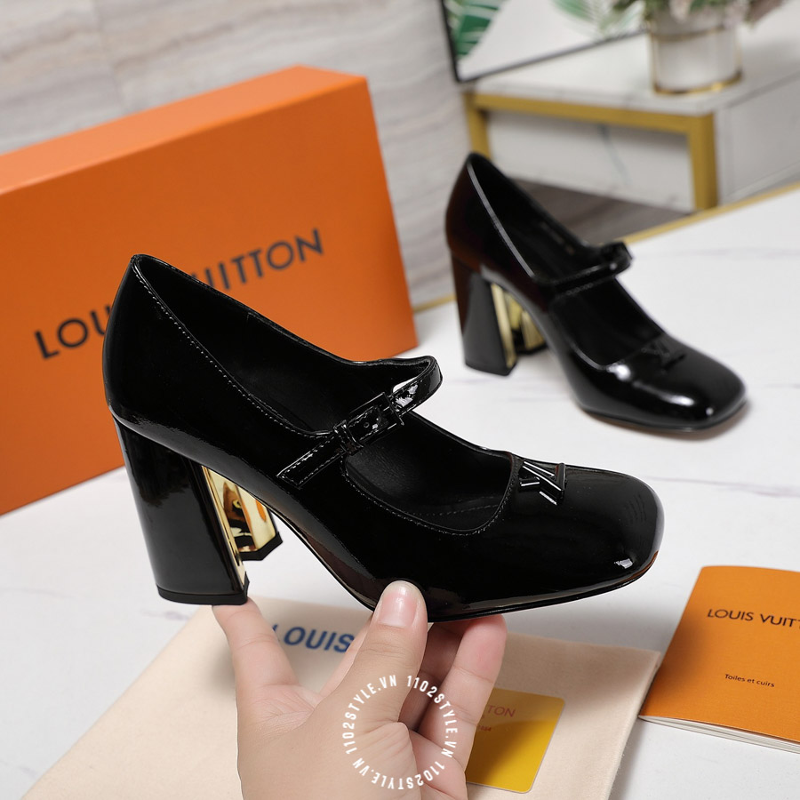 Giày cao gót LV da bóng màu đen hàng hiệu LV09K