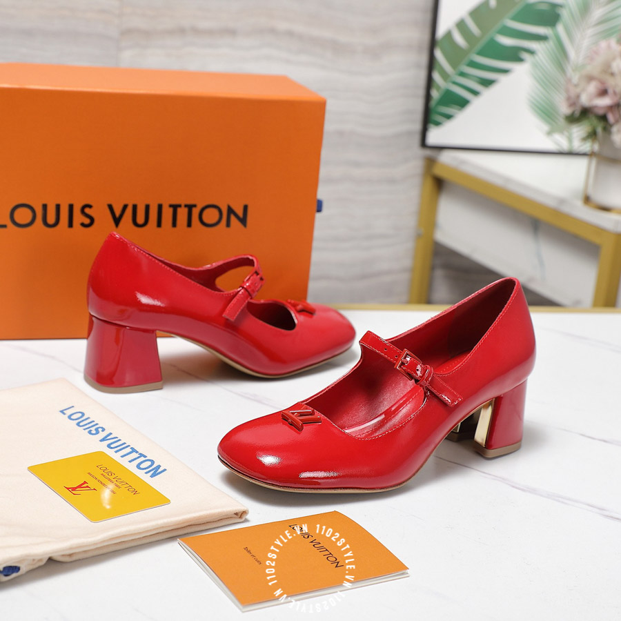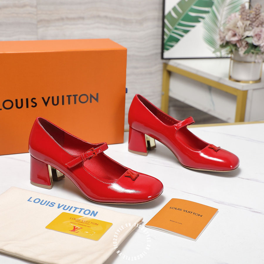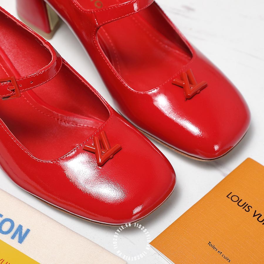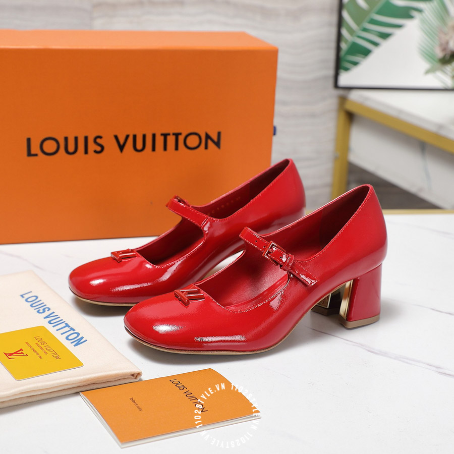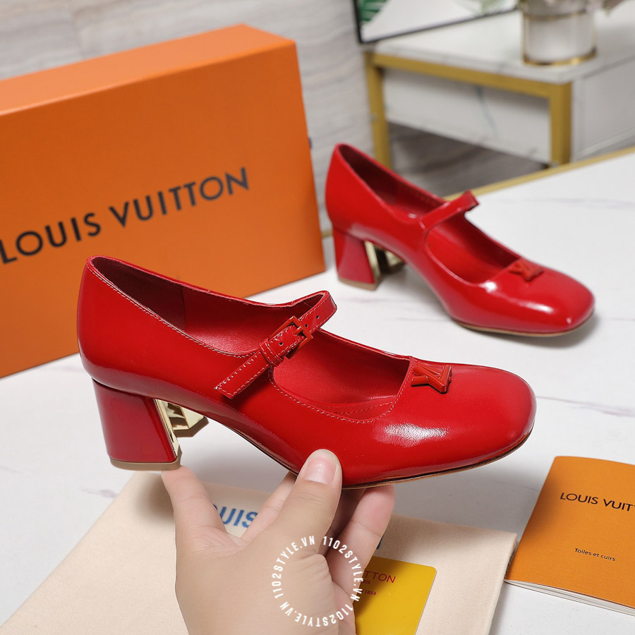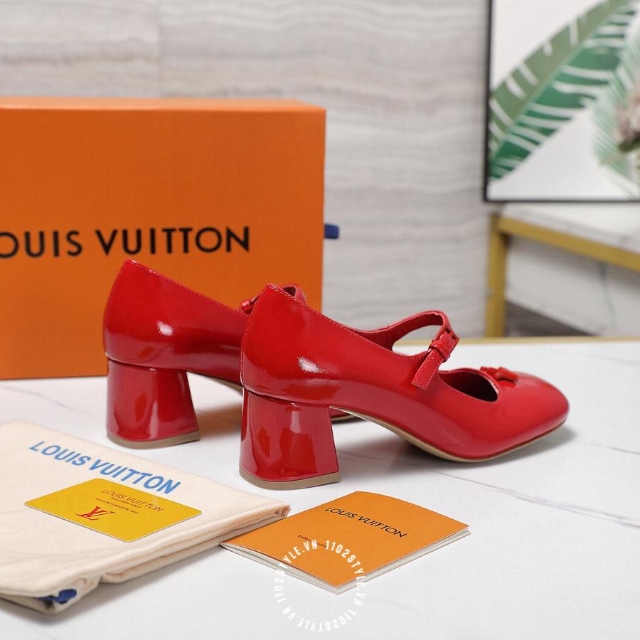 Giày cao gót LV da bóng màu đỏ cao cấp LV08G