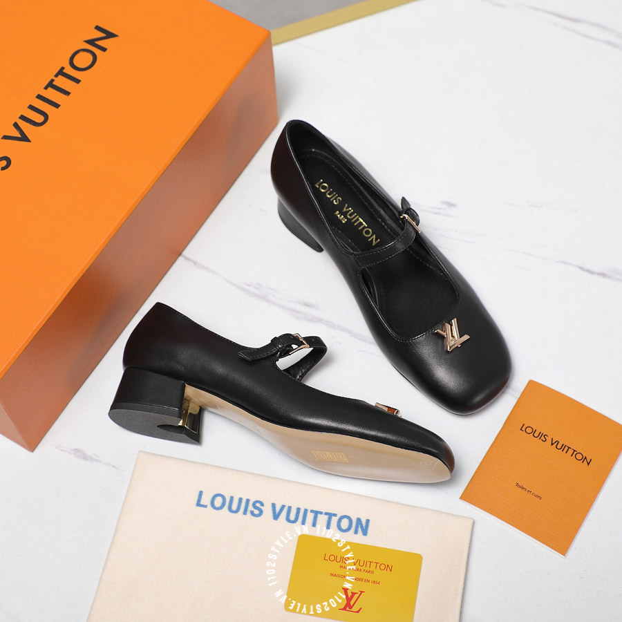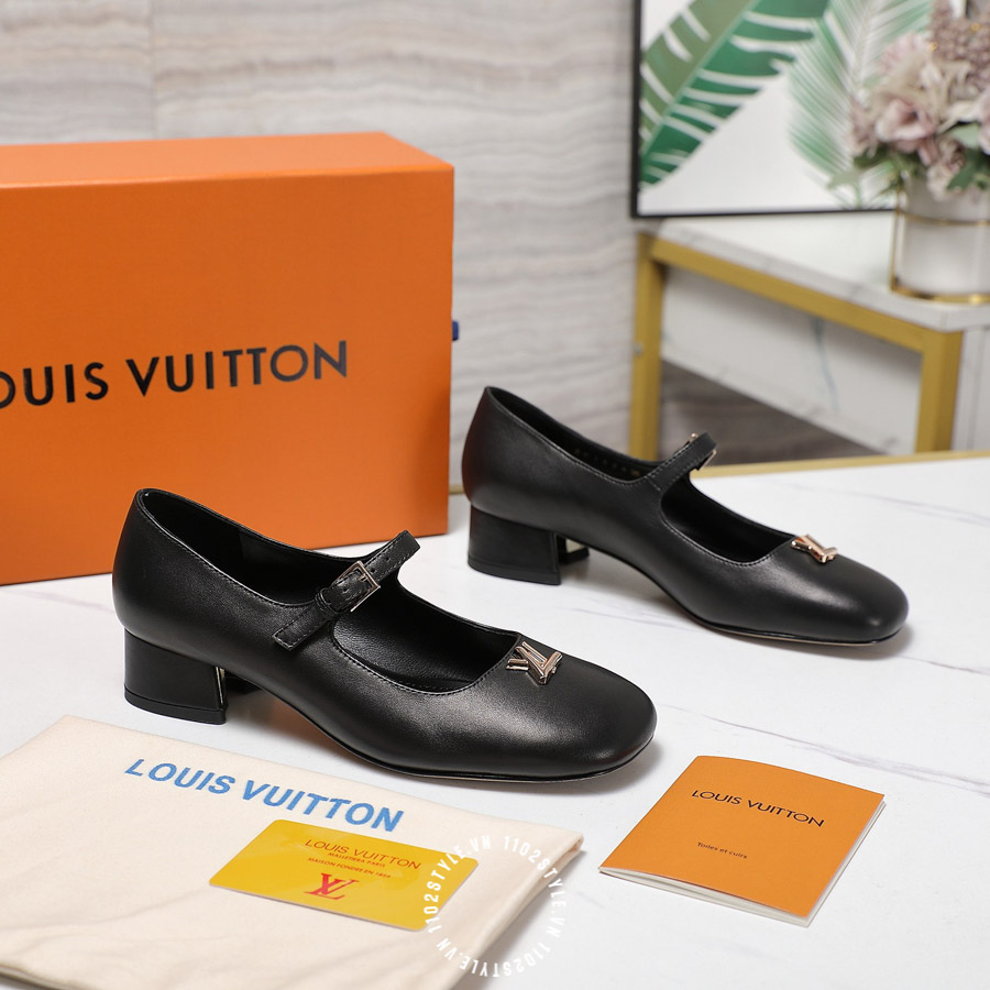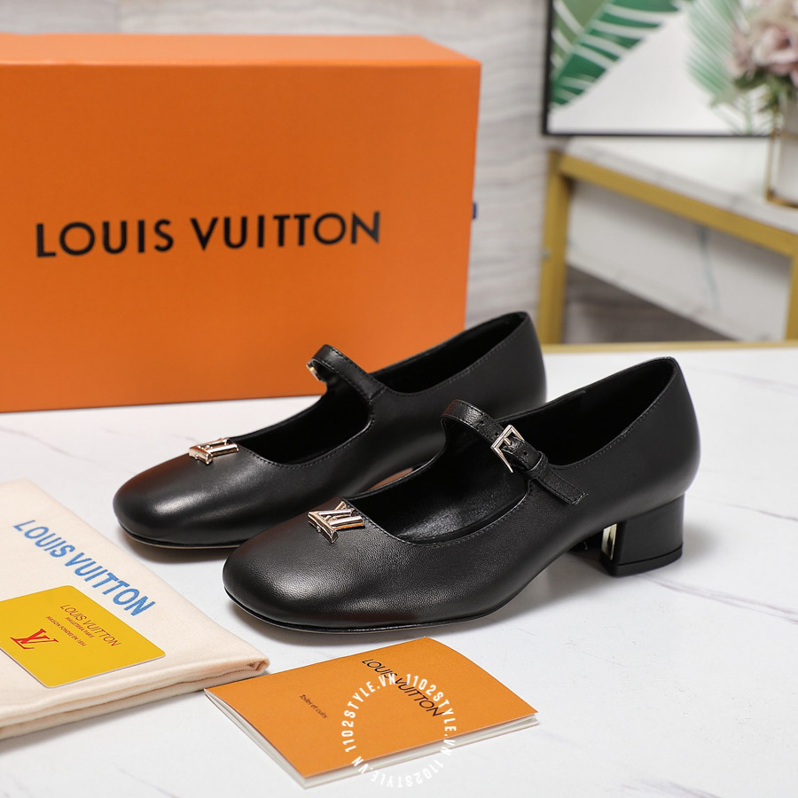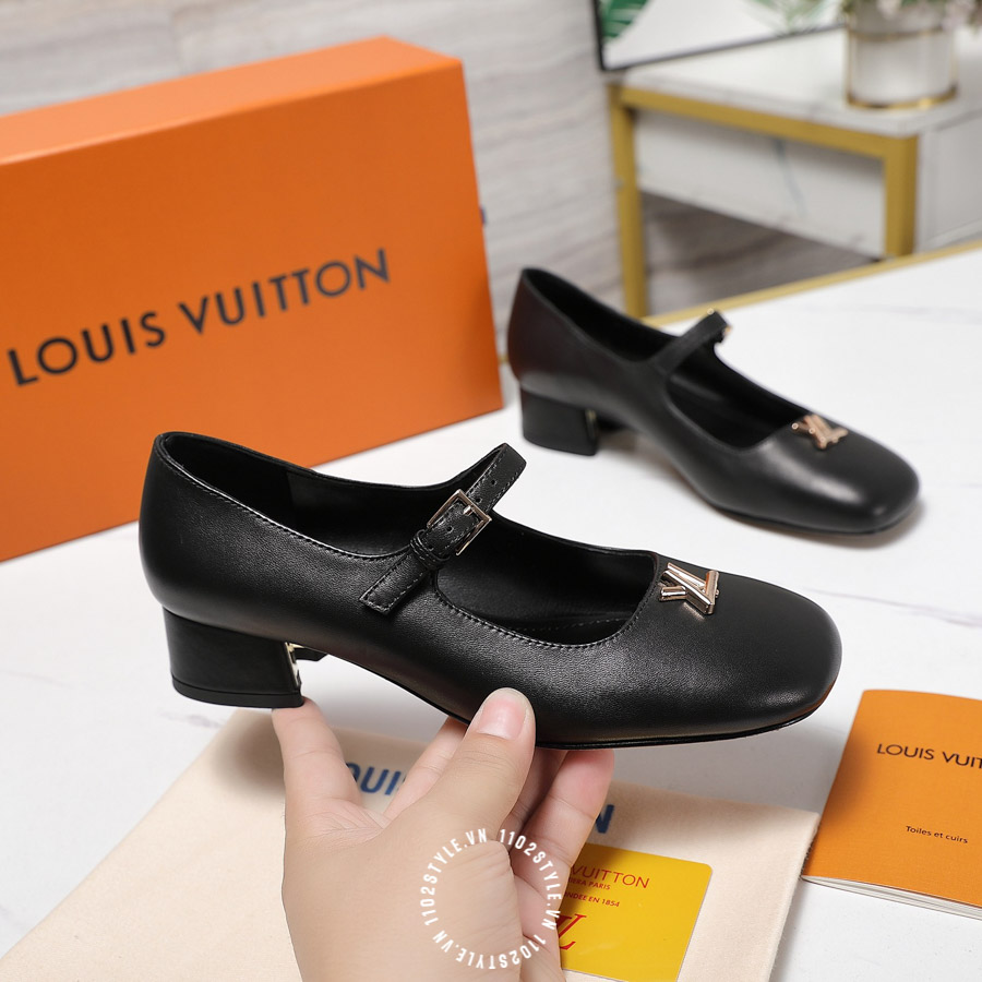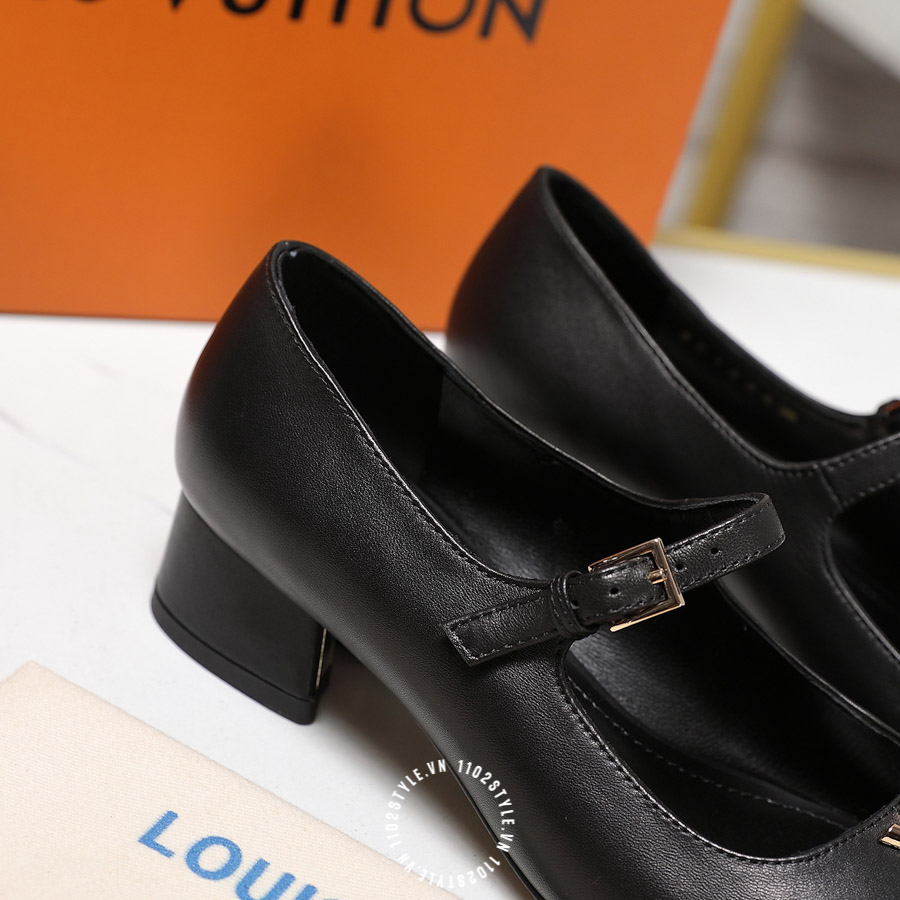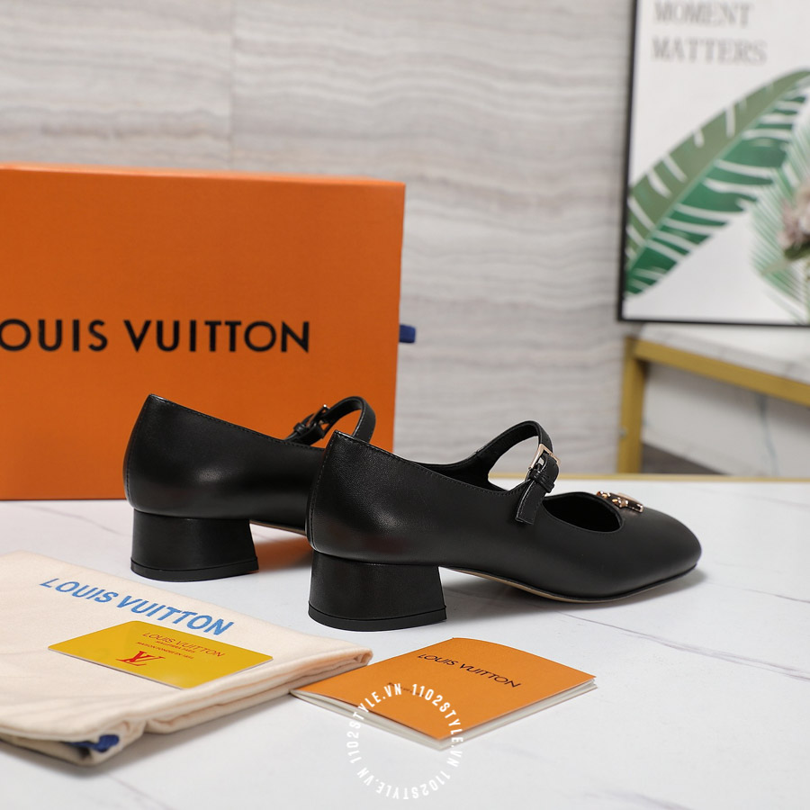 Giày cao gót LV da trơn màu đen cao cấp LV02T