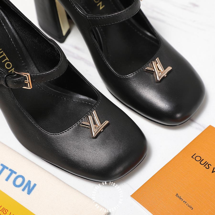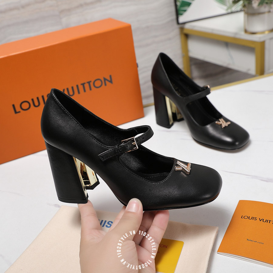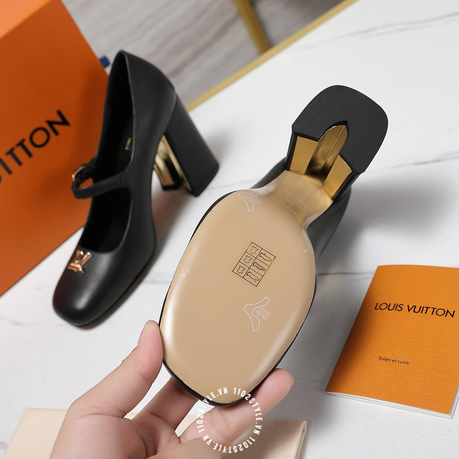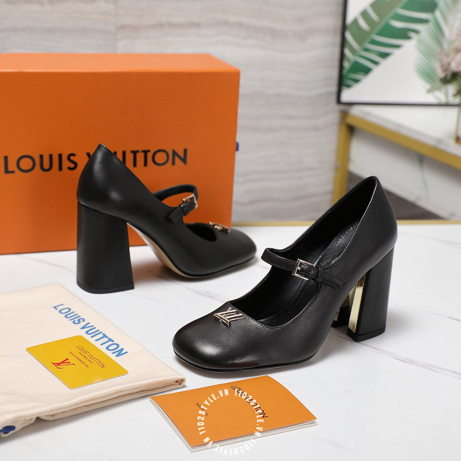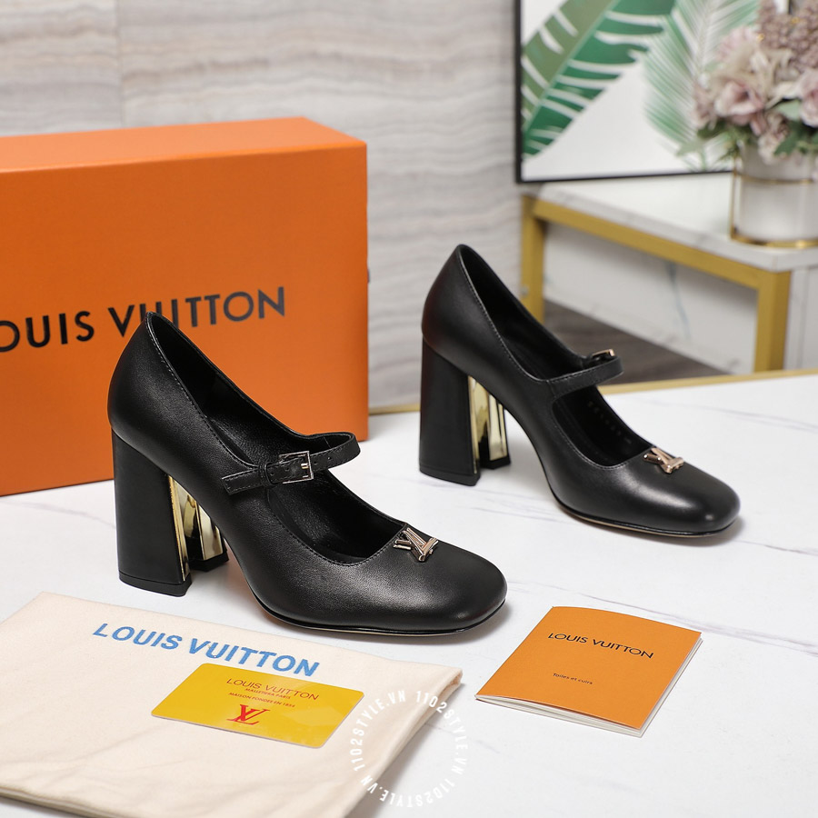Giày cao gót LV da trơn màu đen hàng hiệu LV05K