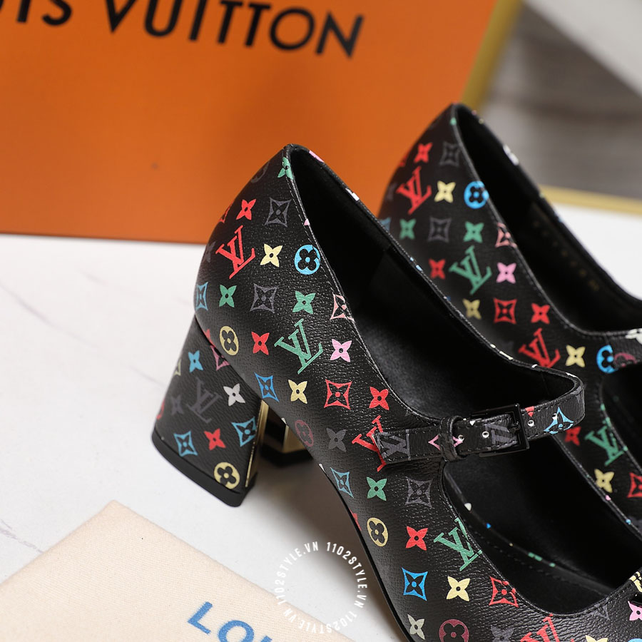 Giày cao gót LV logo màu đen hàng hiệu LV05G