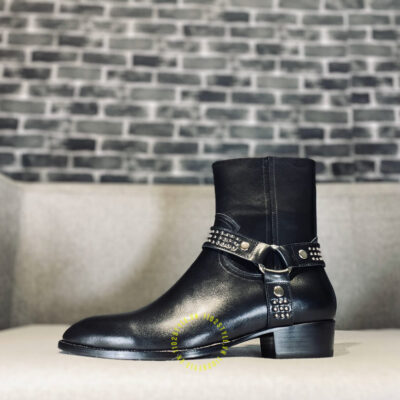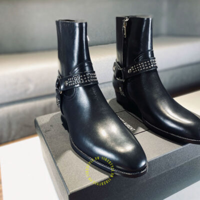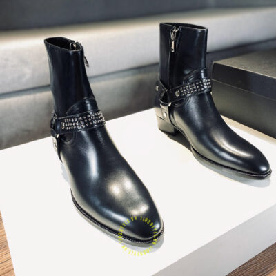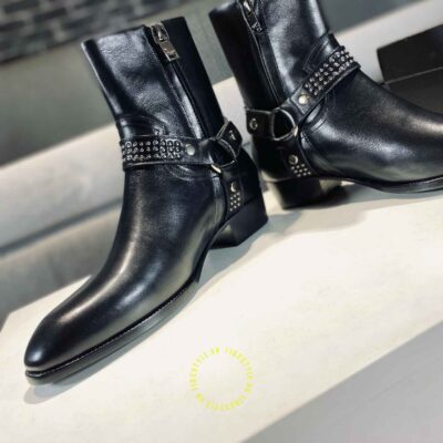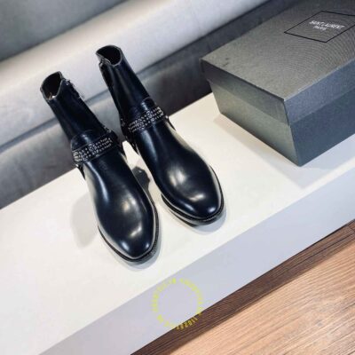Hình ảnh chi tiết giày Chelsea boot YSL màu đen khóa cạnh chất lượng cao: