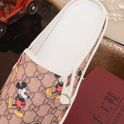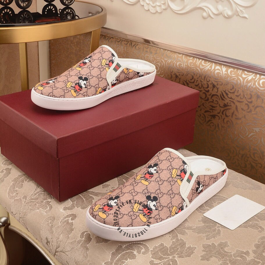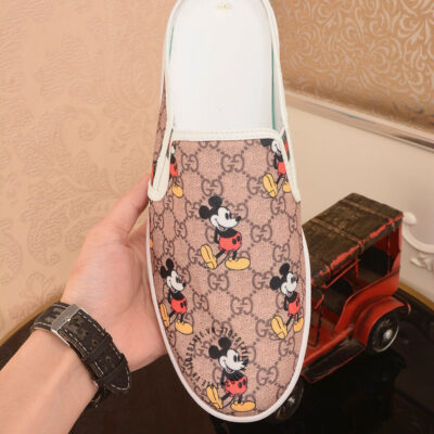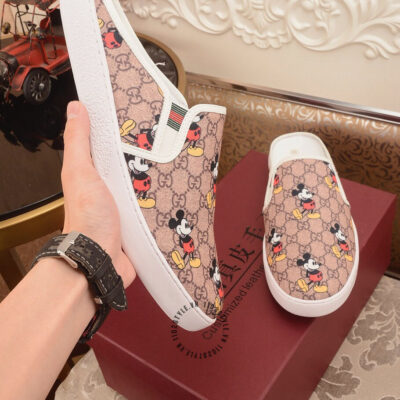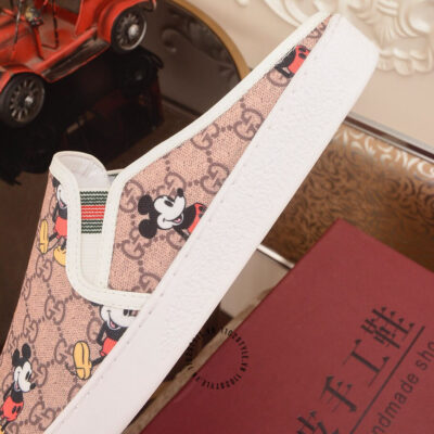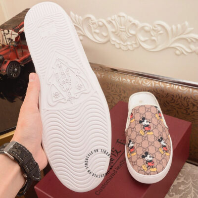 Hình ảnh sản phẩm giày đạp gót Gucci nam màu nâu phối họa tiết chuột Mickey:
