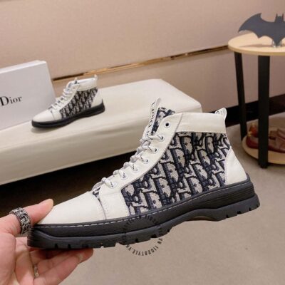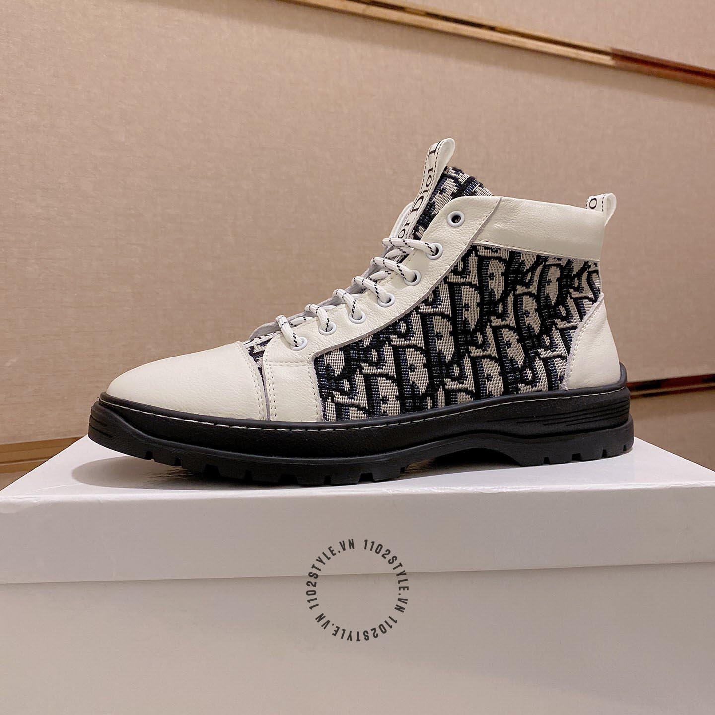Ảnh sản phẩm giày Dior nam fake 1:1 sneaker boot màu trắng phối họa tiết vải: