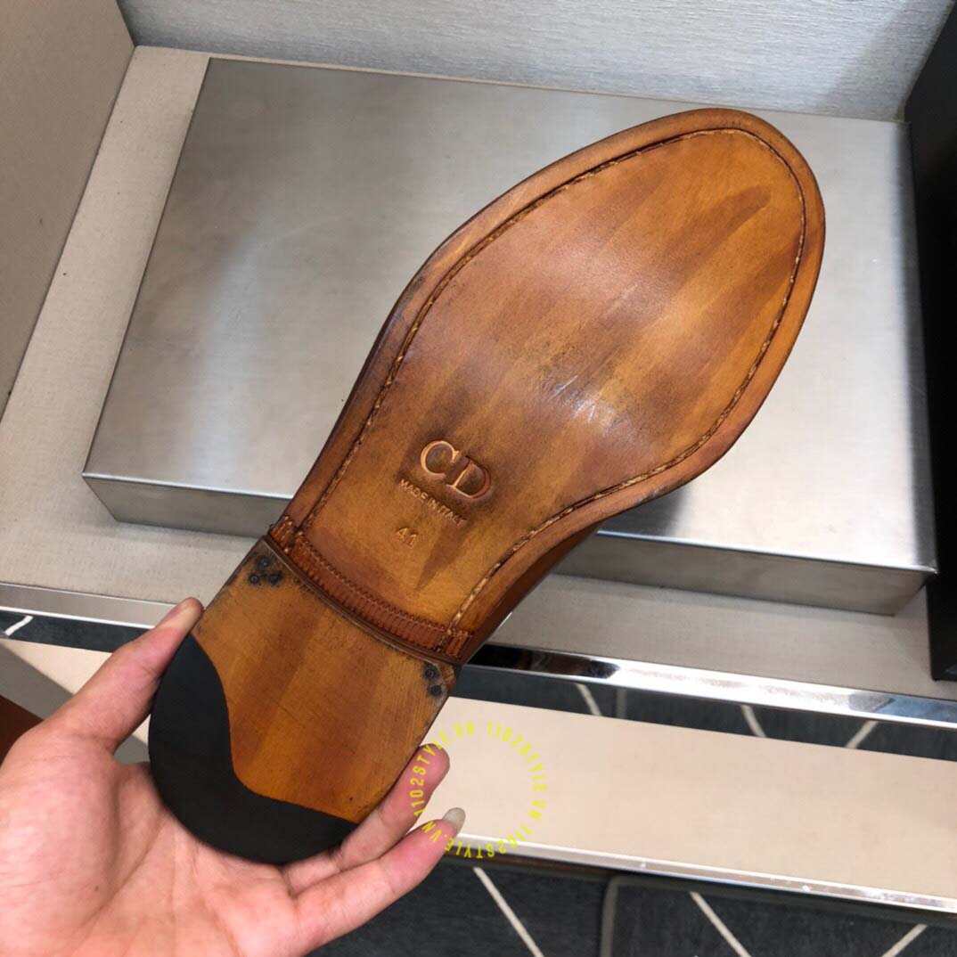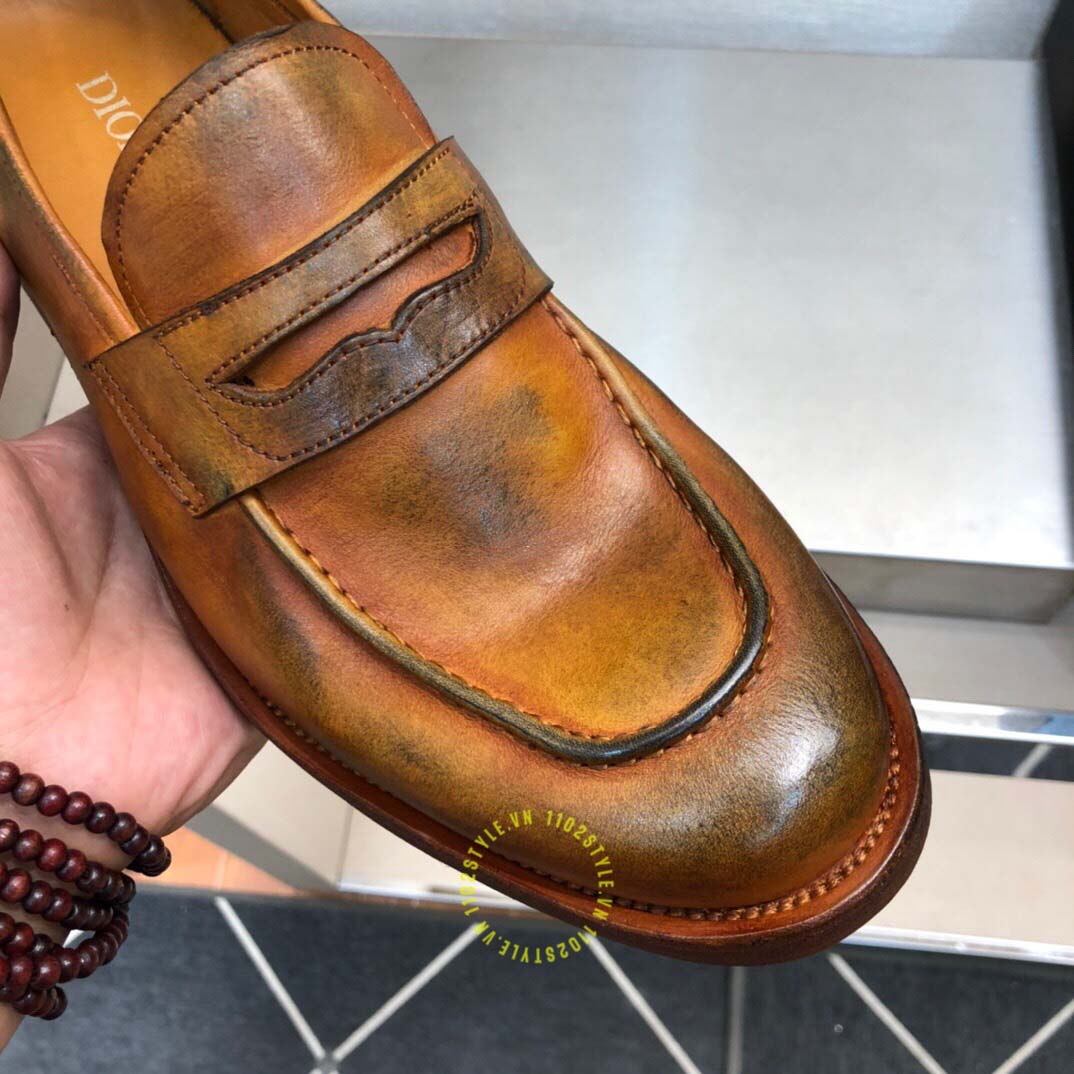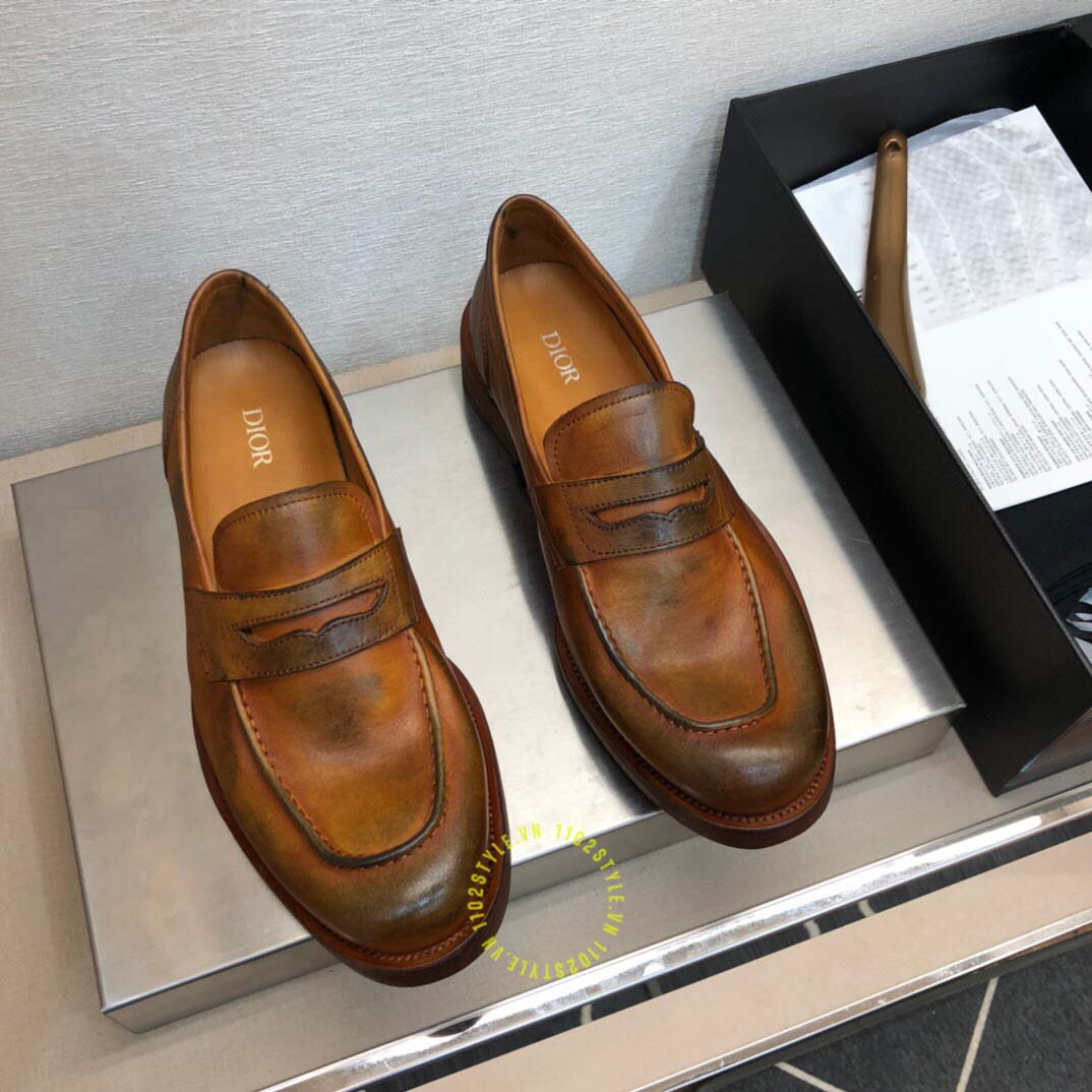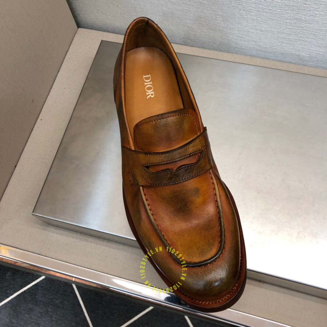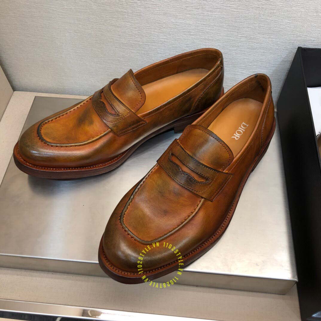 Giày fake 1 cao cấp Loafer Dior nam da mềm màu nâu da bò