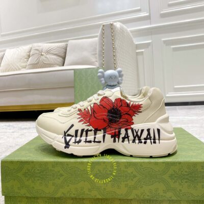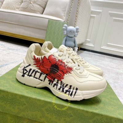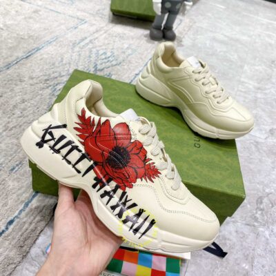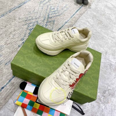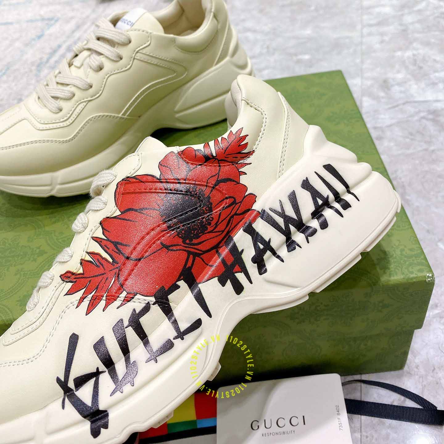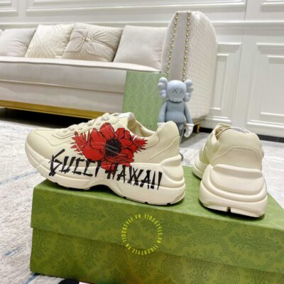 Hình ảnh chi tiết giày Gucci hoa da xịn hàng hiệu màu be giá ưu đãi nhất: