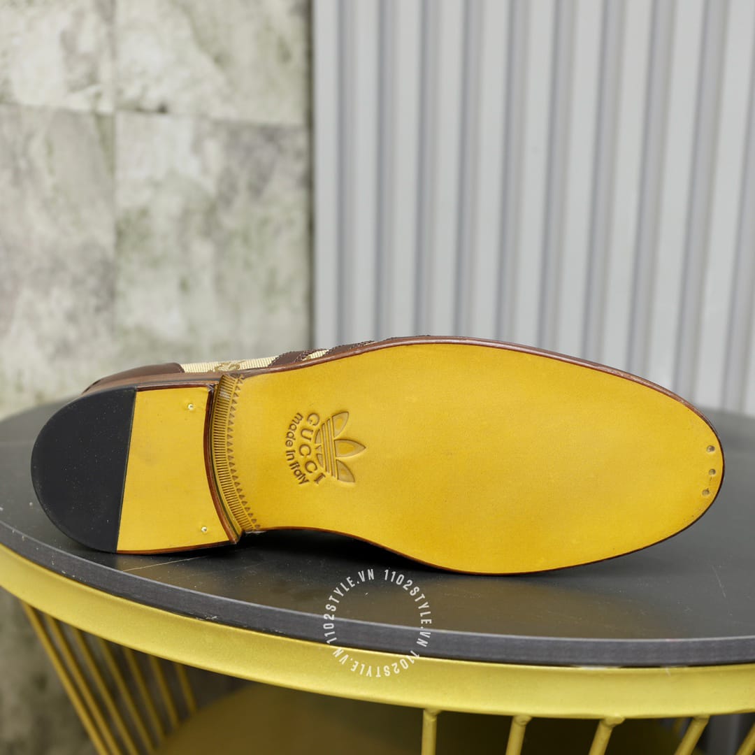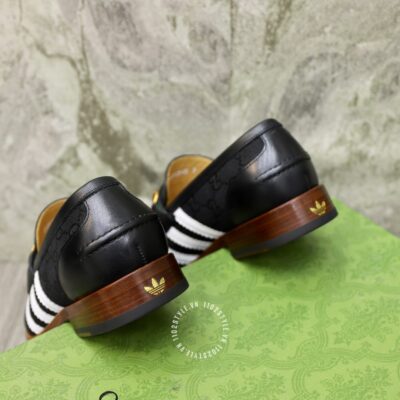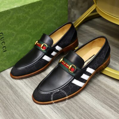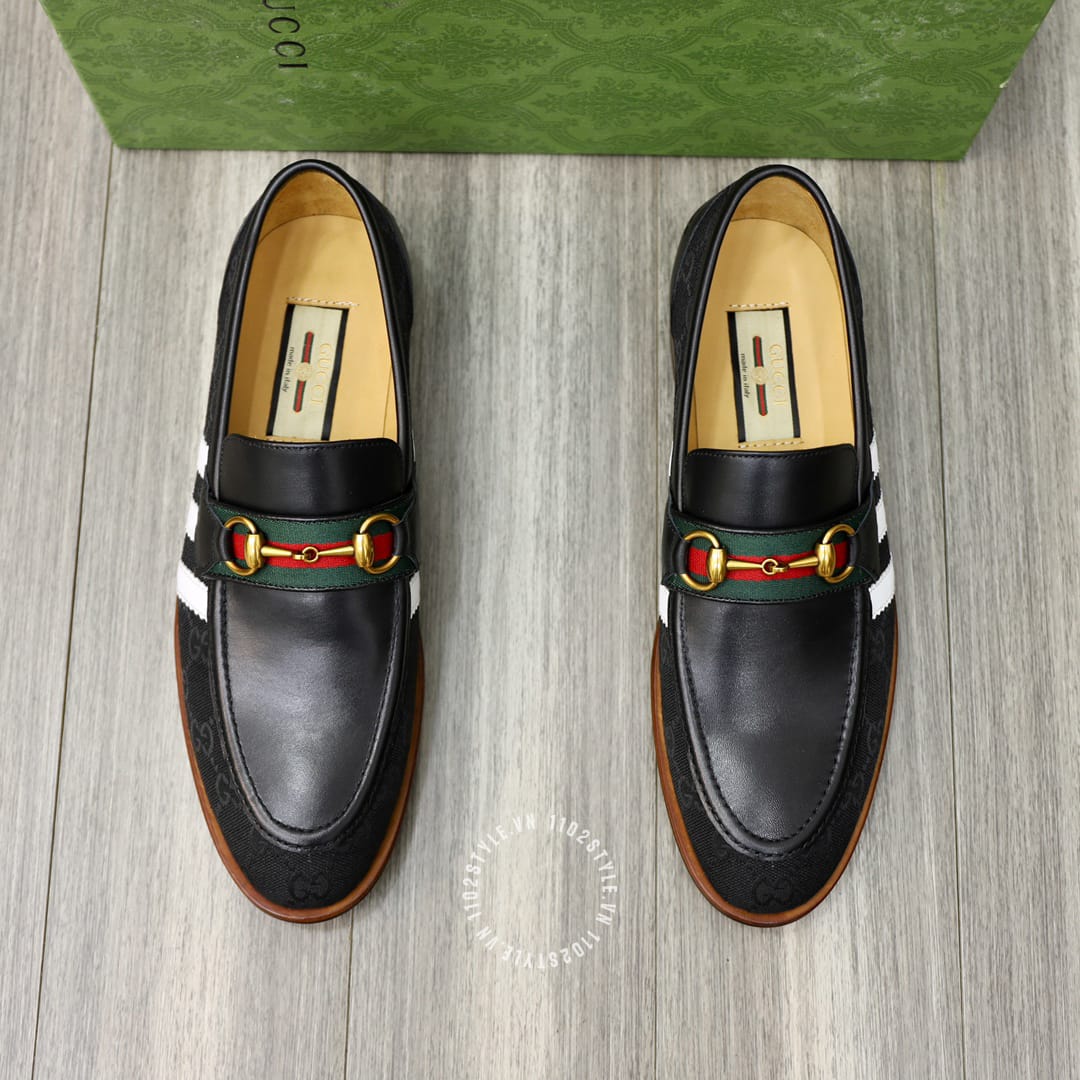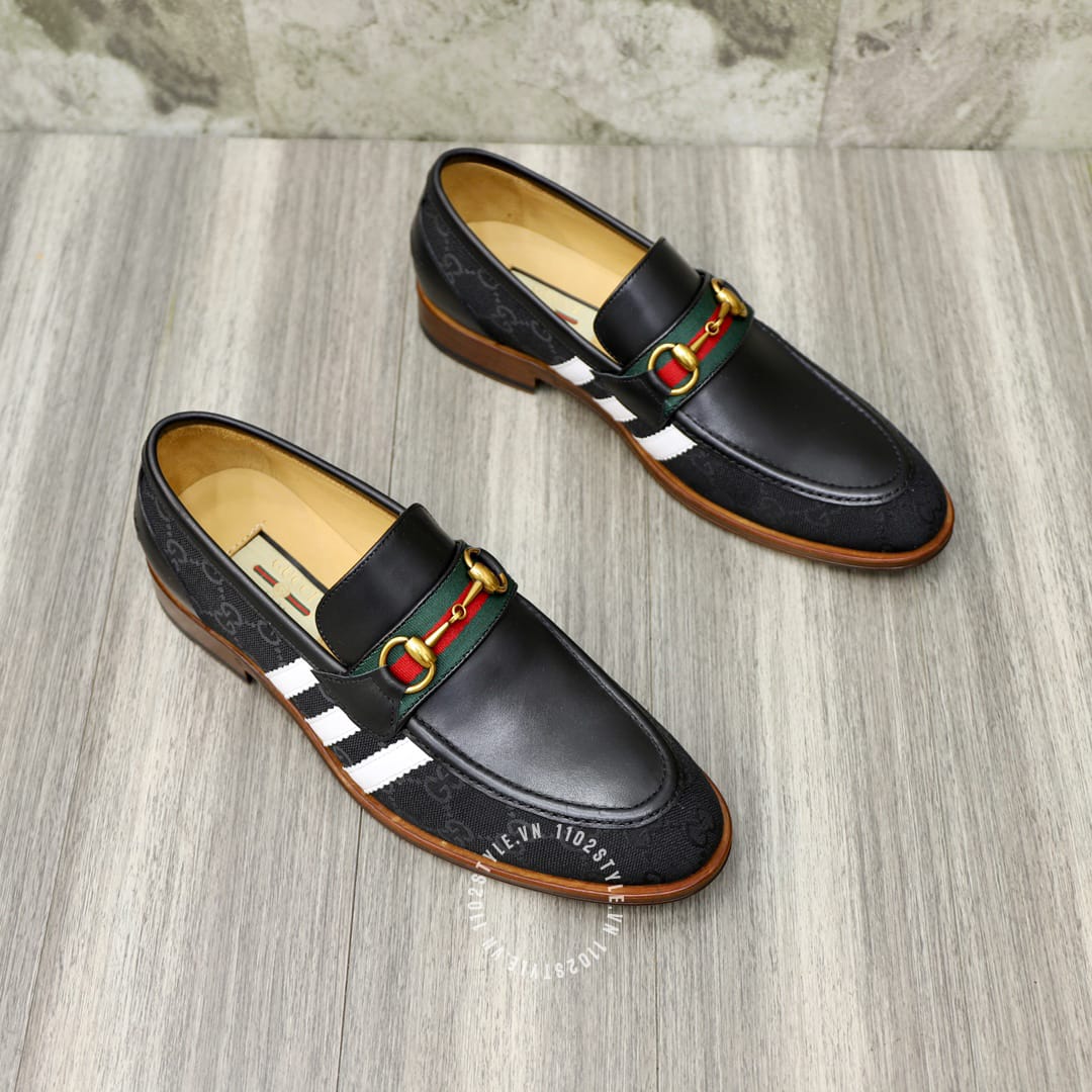Giày loafer Gucci nam cao cấp đen họa tiết trắng logo vàng