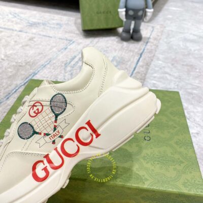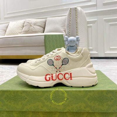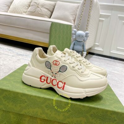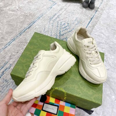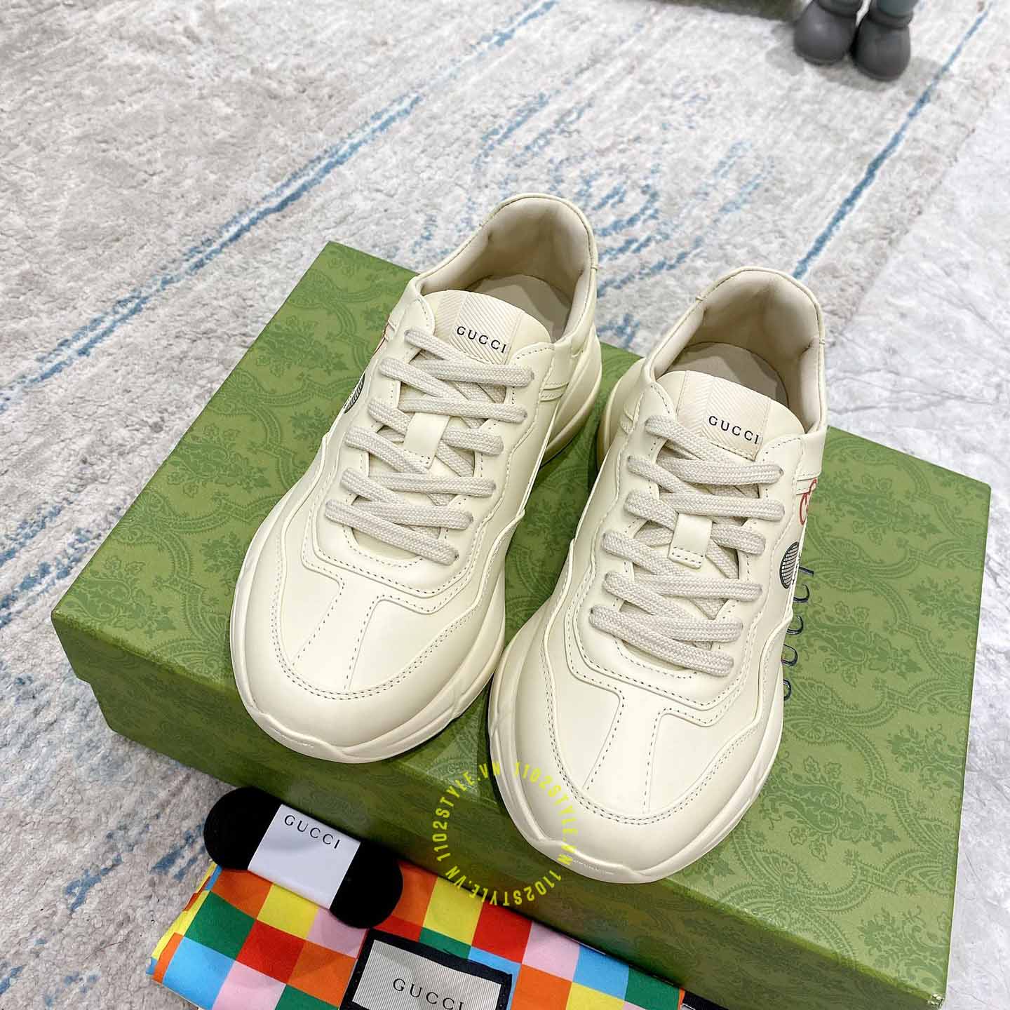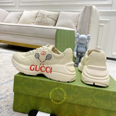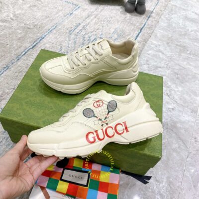 Hình ảnh giày Gucci nam nữ hàng hiệu da xịn màu be phối hoạ tiết: