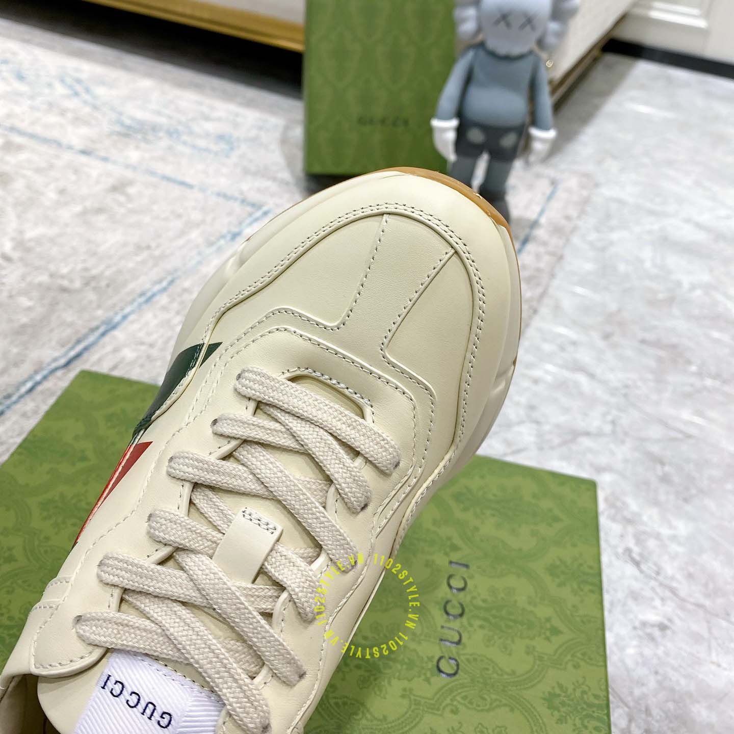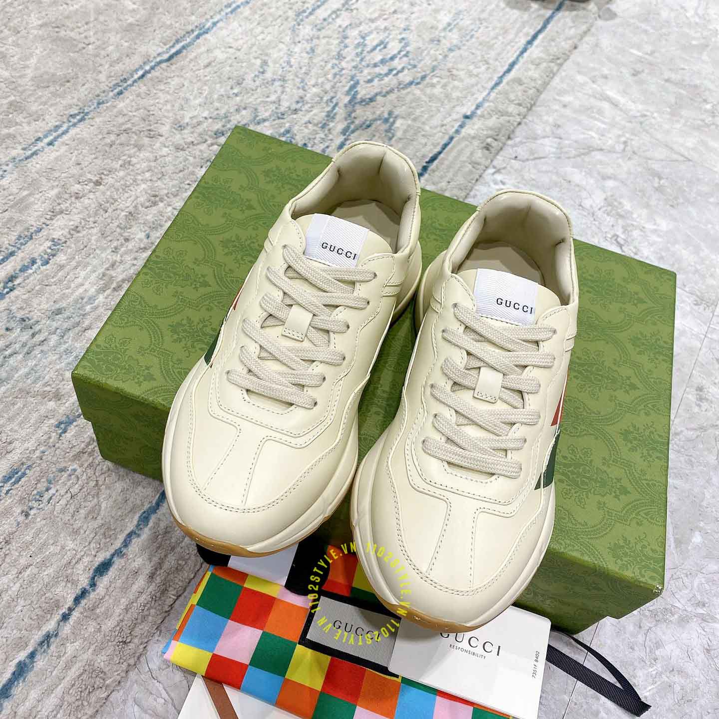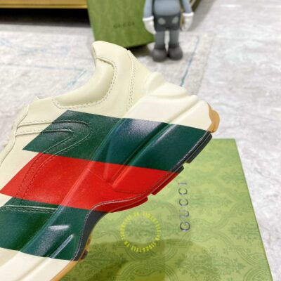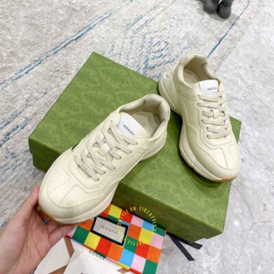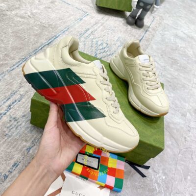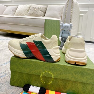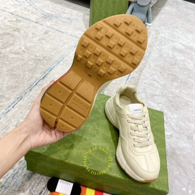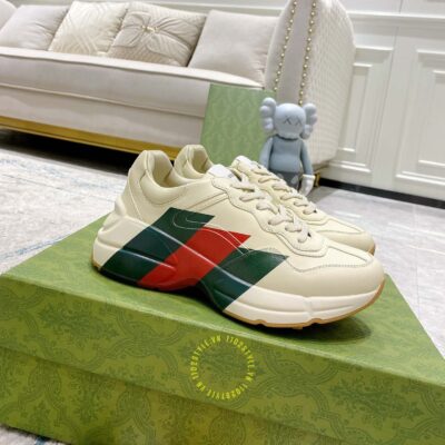 Hình ảnh giày Gucci nam nữ hàng hiệu màu be hoạ tiết Vintage Web: