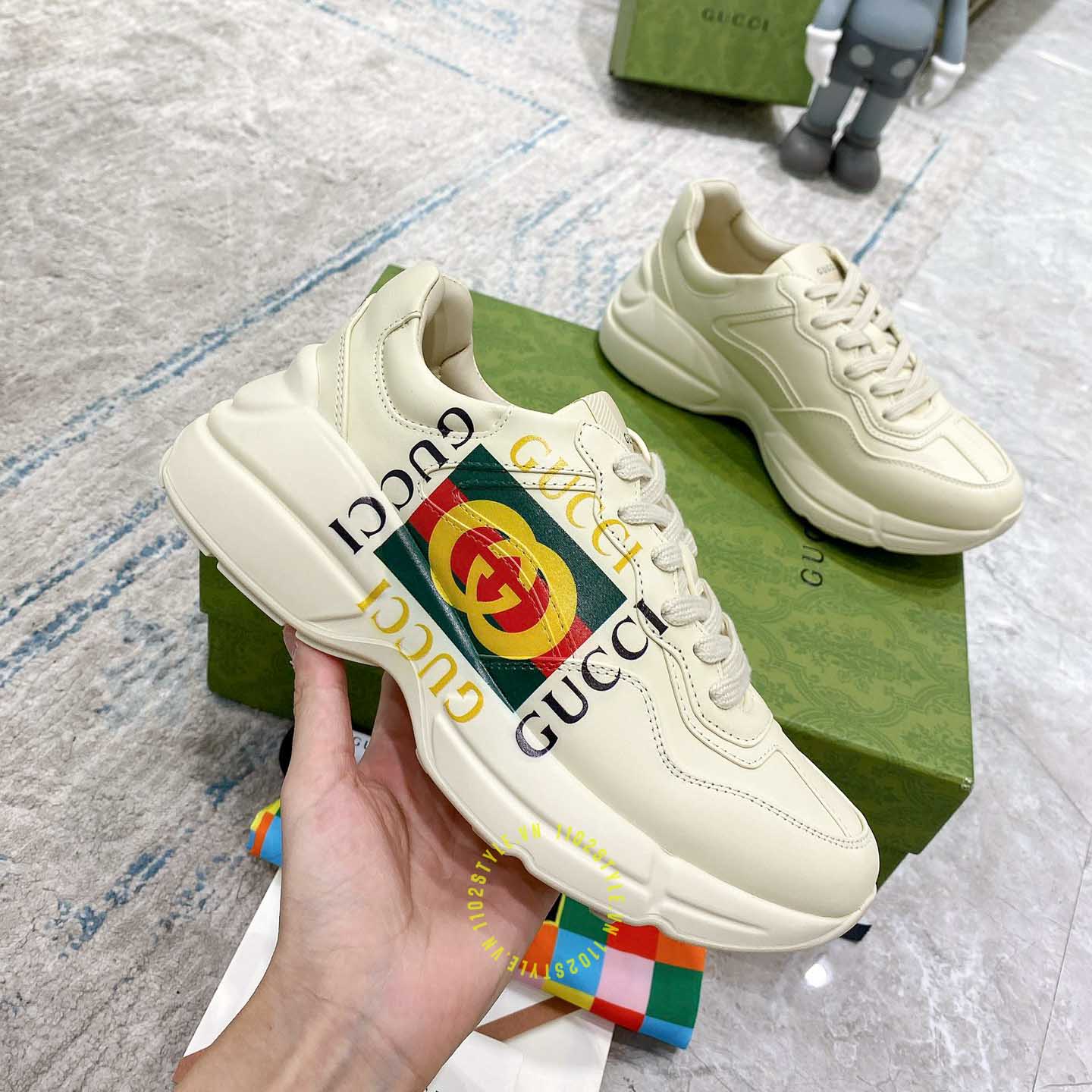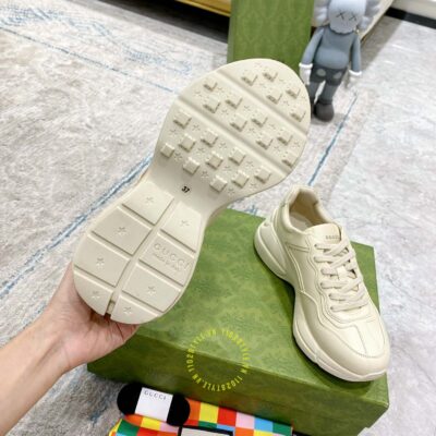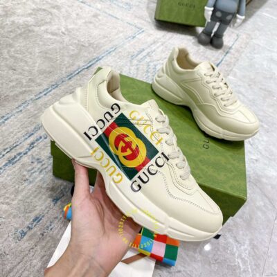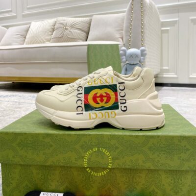 Ảnh chi tiết giày Gucci nam nữ hàng hiệu màu be phối hoạ tiết Vintage Web:
