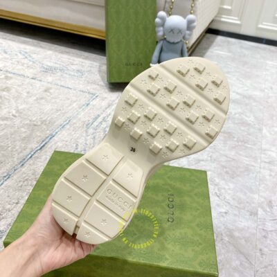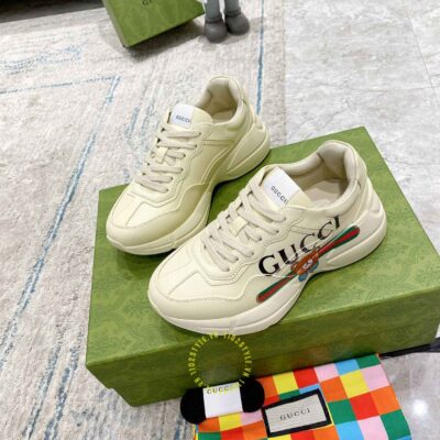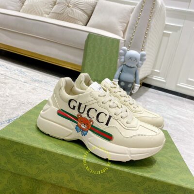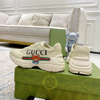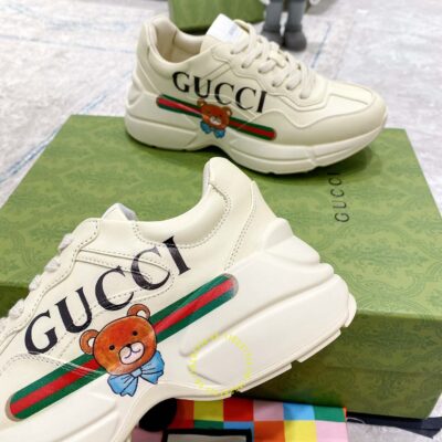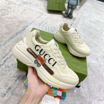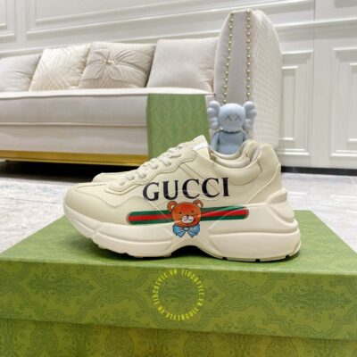 Hình ảnh giày Gucci rep 1:1 authentic màu be phối hoạ tiết gấu nâu: