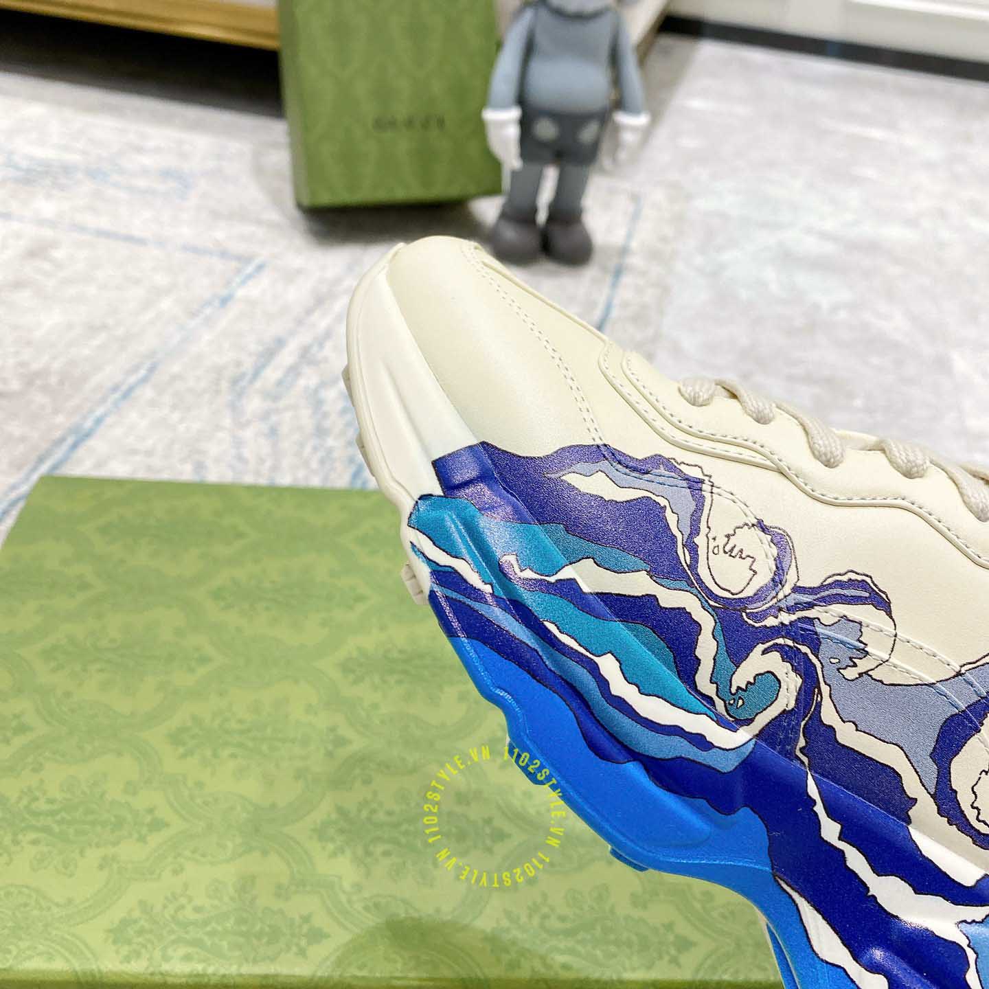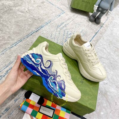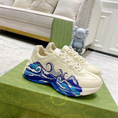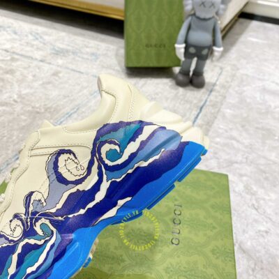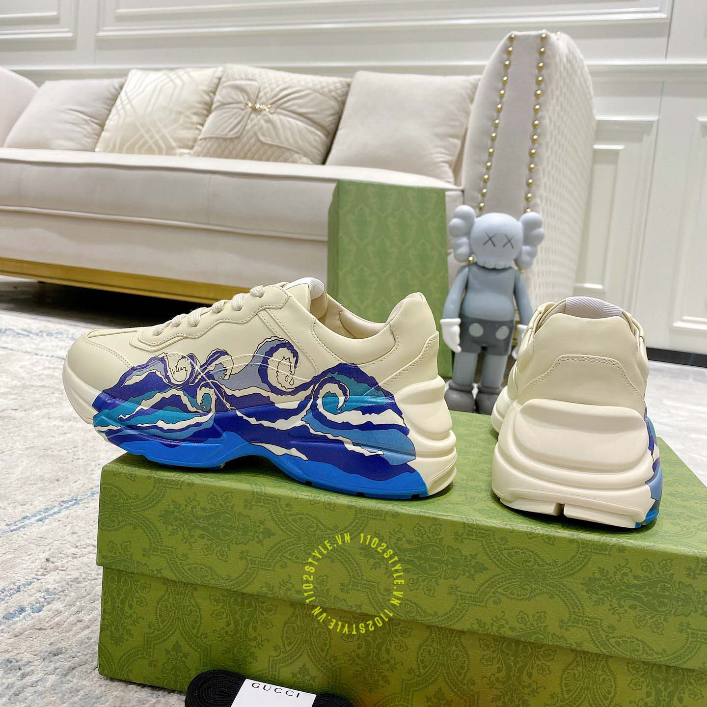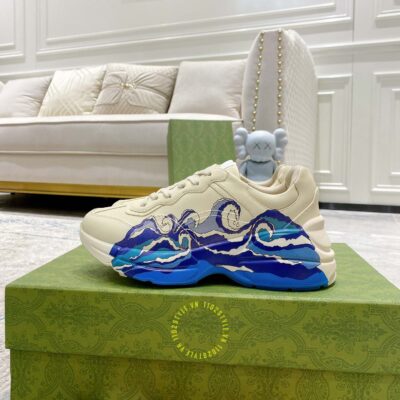 Ảnh chi tiết giày Gucci rep 1:1 authentic màu be phối hoạ tiết sóng biển: