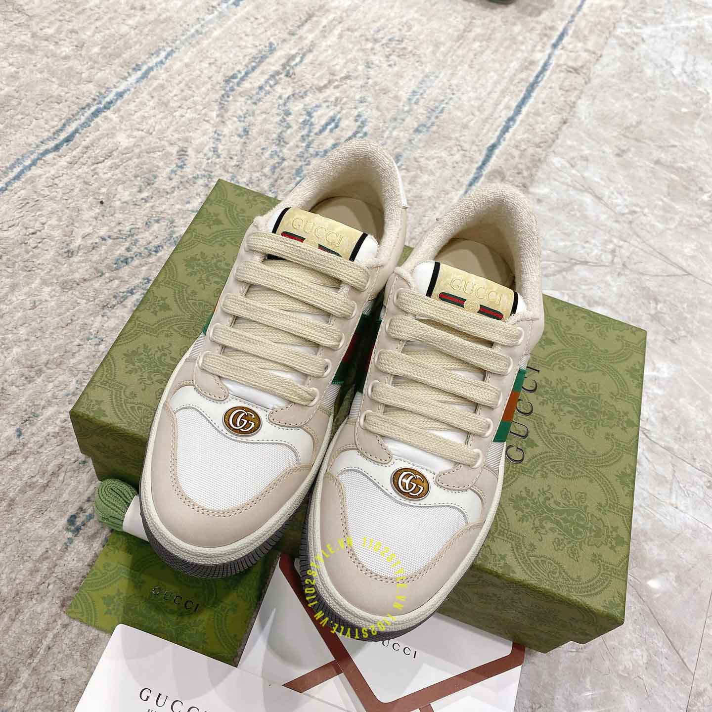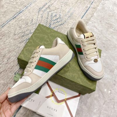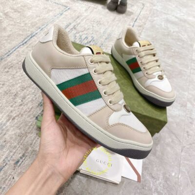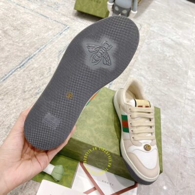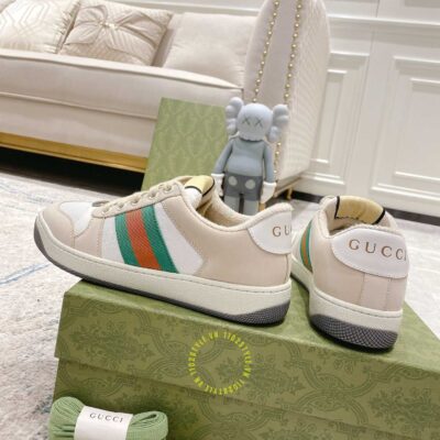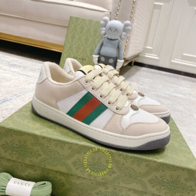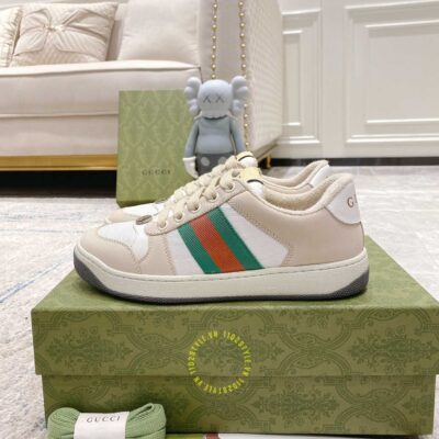 Ảnh mô tả giày Gucci Sneakers nam nữ màu be phối trắng họa tiết Vintage Web: