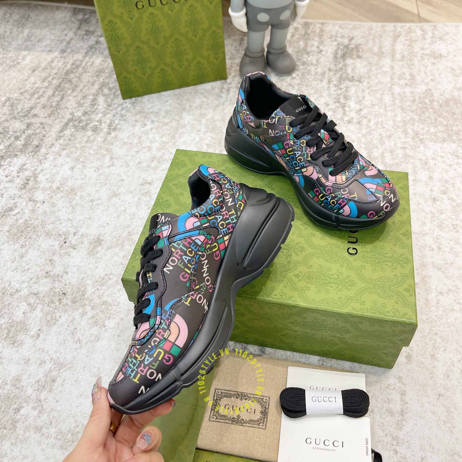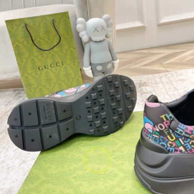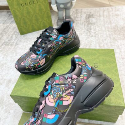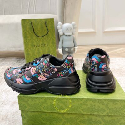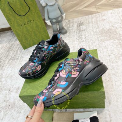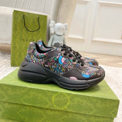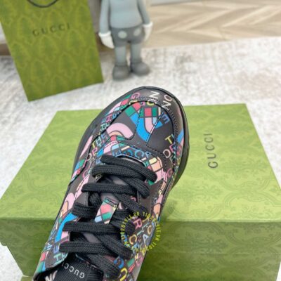 Hình ảnh chi tiết giày Gucci Sneaker unisex hàng hiệu màu đen họa tiết nổi bật:
