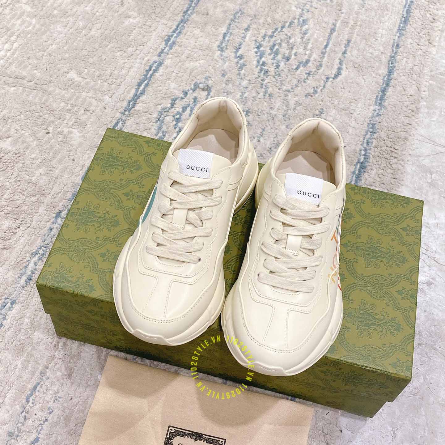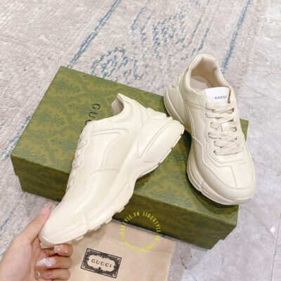 Hình ảnh chi tiết giày Gucci Sneaker unisex hàng hiệu màu trắng họa tiết chữ nổi bật:
