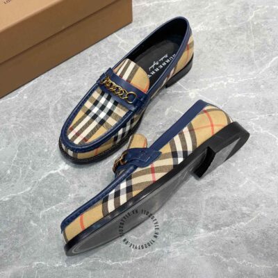 Hình ảnh chi tiết giày Loafer Burberry nam màu be phối màu Super Fake loại 1:
